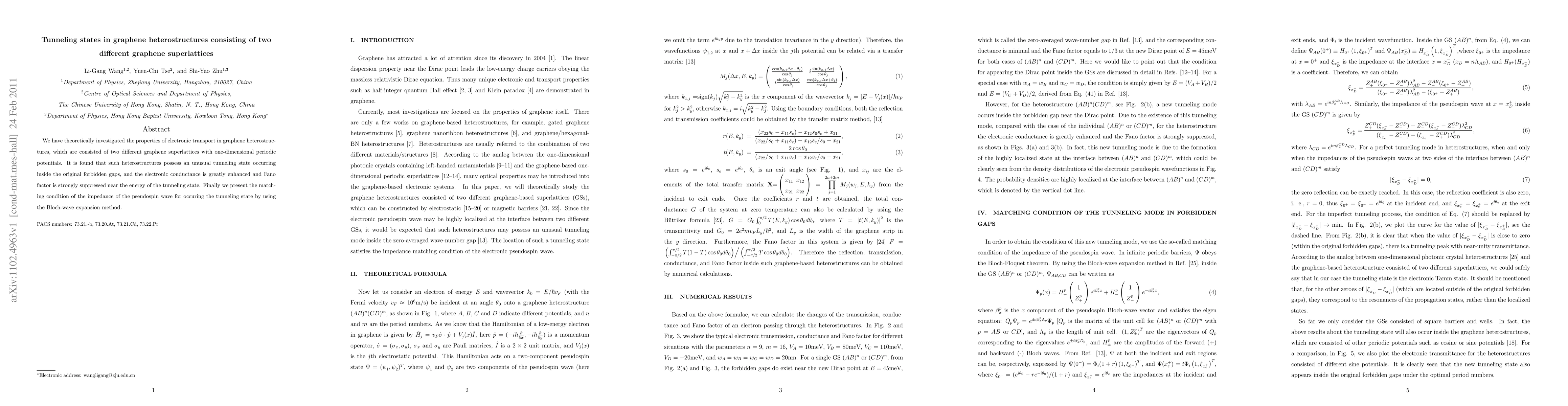 This paper investigates electronic transport in graphene heterostructures composed of two distinct graphene superlattices, revealing an unusual tunneling state within the forbidden gaps that significantly enhances conductance and suppresses the Fano factor near the tunneling state energy. The study employs the Bloch-wave expansion method to derive the matching condition for pseudospin wave impedance for the tunneling state's occurrence.
