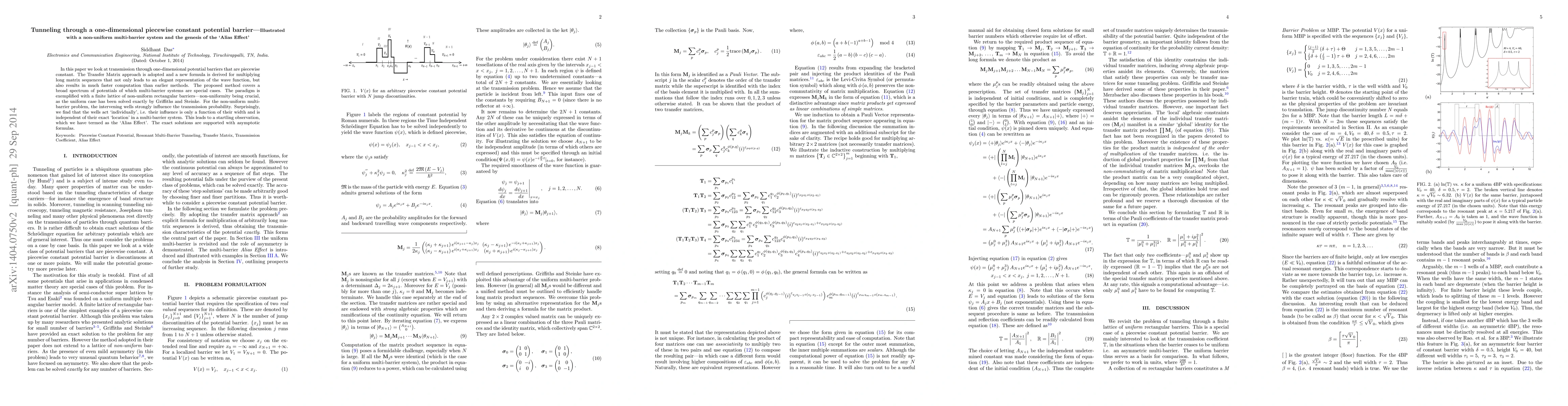 Researchers developed a new method to calculate transmission through one-dimensional potential barriers that are piecewise constant, finding that the wells in multi-barrier systems have an 'Alias Effect' where their influence is independent of location.