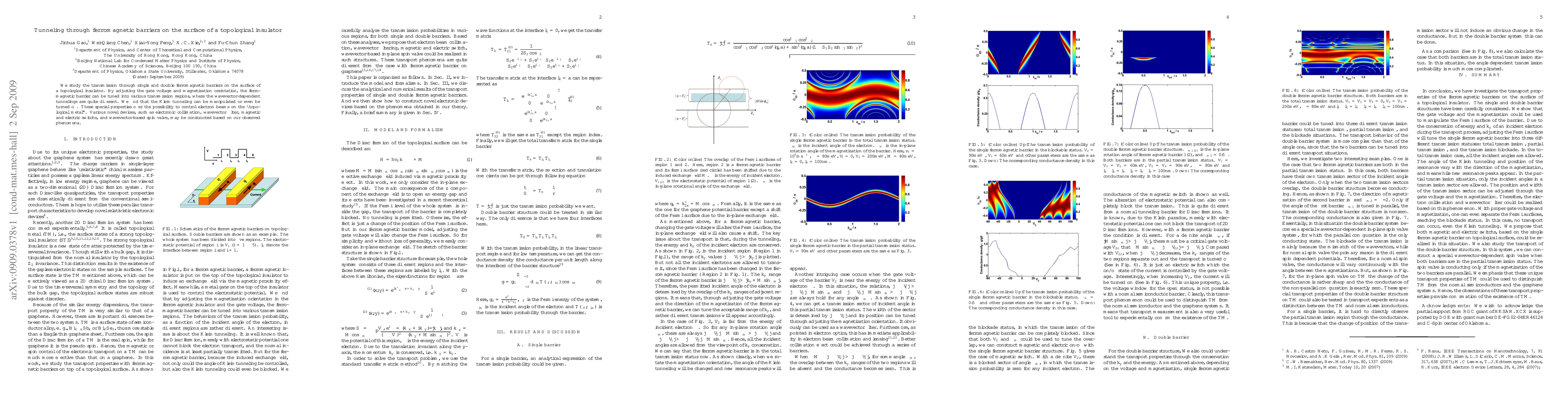 We study the transmission through single and double ferromagnetic barriers on the surface of a topological insulator. By adjusting the gate voltage and magnetization oreintation, the ferromagnetic barrier can be tuned into various transmission regions, where the wavevector-dependent tunnelings are quite different. We find that the Klein tunneling can be manipulated or even be turned off. These special properties offer the possibility to control electron beams on the "topological metal". Various novel devices, such as electronic collimation, wavevector filter, magnetic and electric switchs, and wavevector-based spin valve, may be constructed based on our observed phenomena.