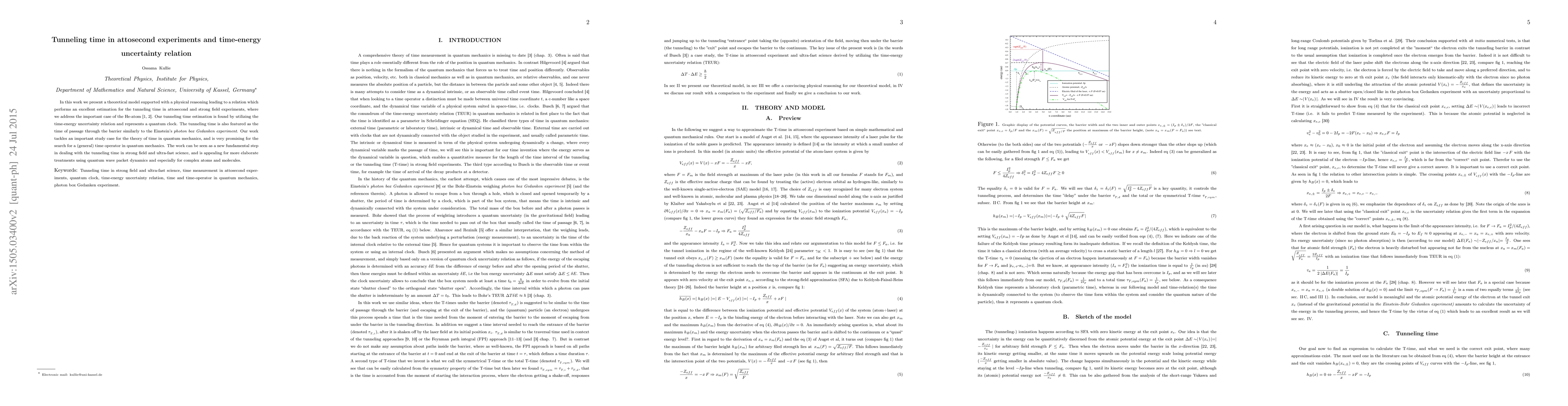 This paper proposes a theoretical model to estimate tunneling time in attosecond experiments using the time-energy uncertainty relation, focusing on the He-atom. It introduces a quantum clock approach and suggests potential implications for developing a general time operator in quantum mechanics.