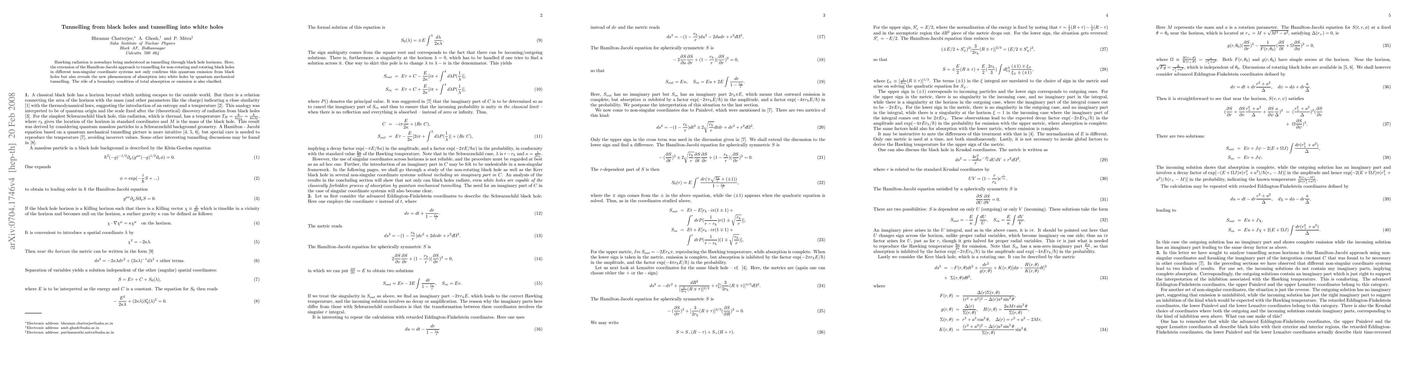 Hawking radiation is nowadays being understood as tunnelling through black hole horizons. Here, the extension of the Hamilton-Jacobi approach to tunnelling for non-rotating and rotating black holes in different non-singular coordinate systems not only confirms this quantum emission from black holes but also reveals the new phenomenon of absorption into white holes by quantum mechanical tunnelling. The role of a boundary condition of total absorption or emission is also clarified.