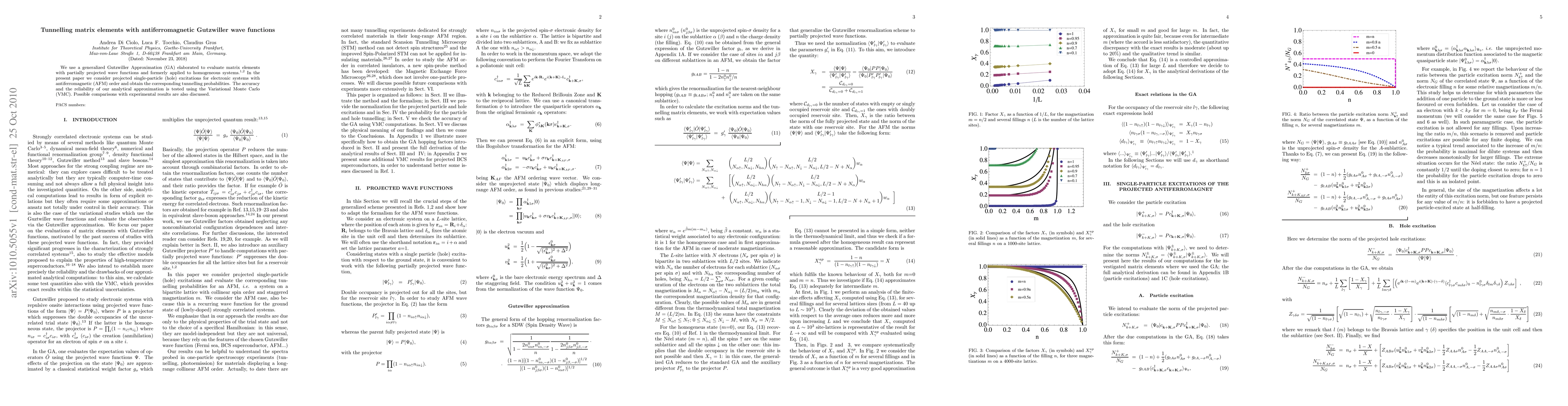 This paper evaluates tunnelling matrix elements for electronic systems with antiferromagnetic order using a generalized Gutzwiller Approximation, assessing its accuracy through Variational Monte Carlo simulations and discussing potential experimental comparisons.