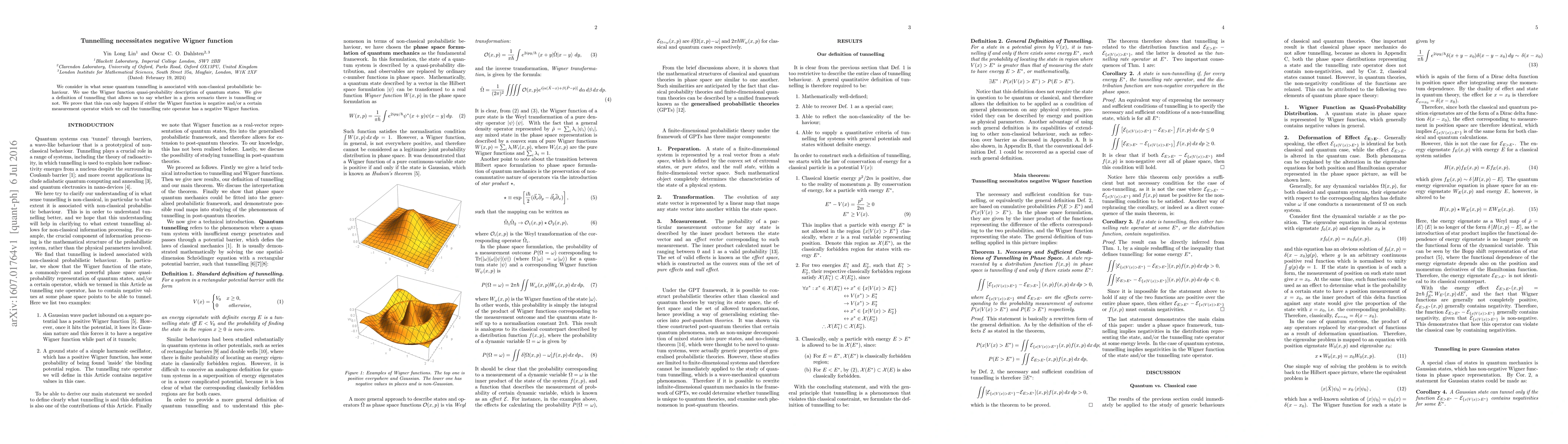 This paper establishes that quantum tunnelling is inherently linked to non-classical probabilistic behaviour, demonstrated through the necessity of negative regions in the Wigner function or the tunnelling rate operator. This finding underscores the role of non-classicality in quantum tunnelling processes.