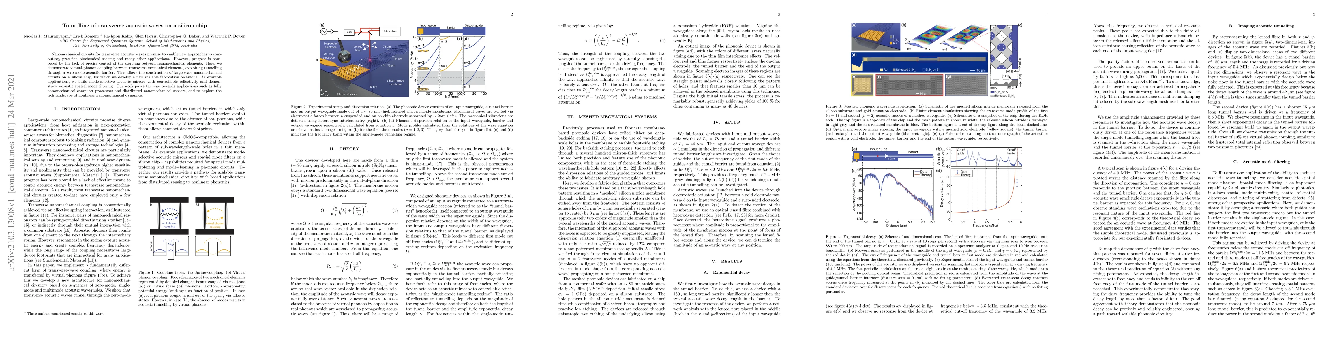 Nanomechanical circuits for transverse acoustic waves promise to enable new approaches to computing, precision biochemical sensing and many other applications. However, progress is hampered by the lack of precise control of the coupling between nanomechanical elements. Here, we demonstrate virtual-phonon coupling between transverse mechanical elements, exploiting tunnelling through a zero-mode acoustic barrier. This allows the construction of large-scale nanomechanical circuits on a silicon chip, for which we develop a new scalable fabrication technique. As example applications, we build mode-selective acoustic mirrors with controllable reflectivity and demonstrate acoustic spatial mode filtering. Our work paves the way towards applications such as fully nanomechanical computer processors and distributed nanomechanical sensors, and to explore the rich landscape of nonlinear nanomechanical dynamics.
