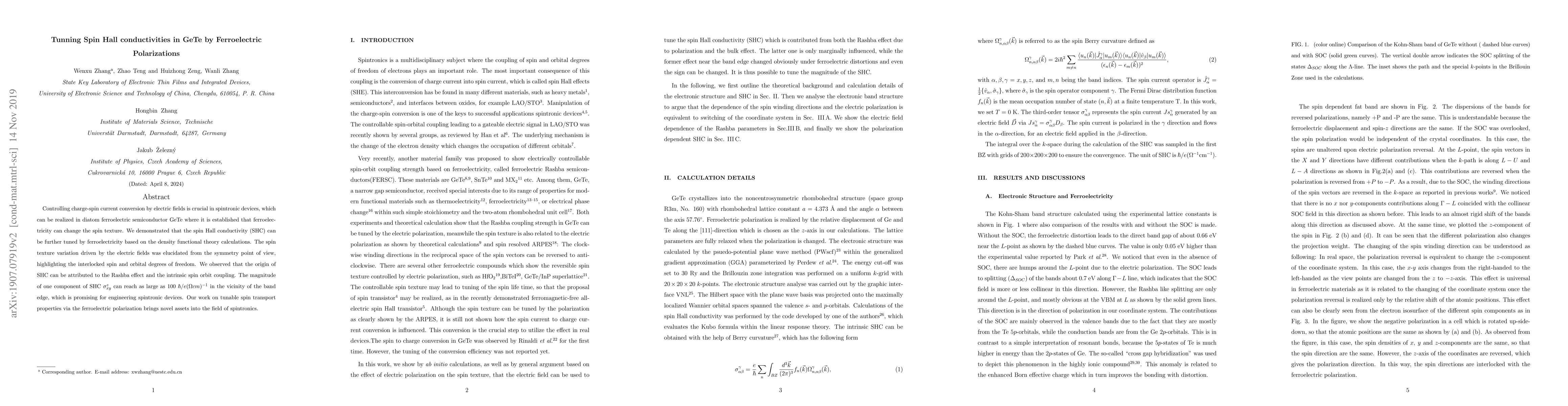 Researchers demonstrated that electric fields can tune spin Hall conductivity in GeTe by ferroelectric polarization, potentially enabling the creation of more efficient spintronic devices.