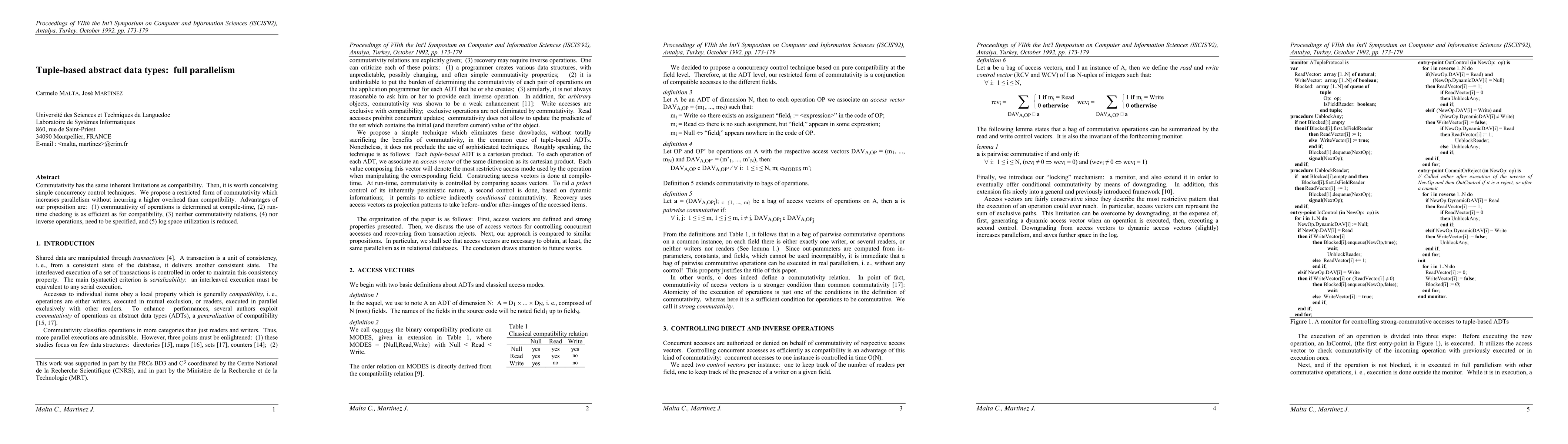 Commutativity has the same inherent limitations as compatibility. Then, it is worth conceiving simple concurrency control techniques. We propose a restricted form of commutativity which increases parallelism without incurring a higher overhead than compatibility. Advantages of our proposition are: (1) commutativity of operations is determined at compile-time, (2) run-time checking is as efficient as for compatibility, (3) neither commutativity relations, (4) nor inverse operations, need to be specified, and (5) log space utilization is reduced.