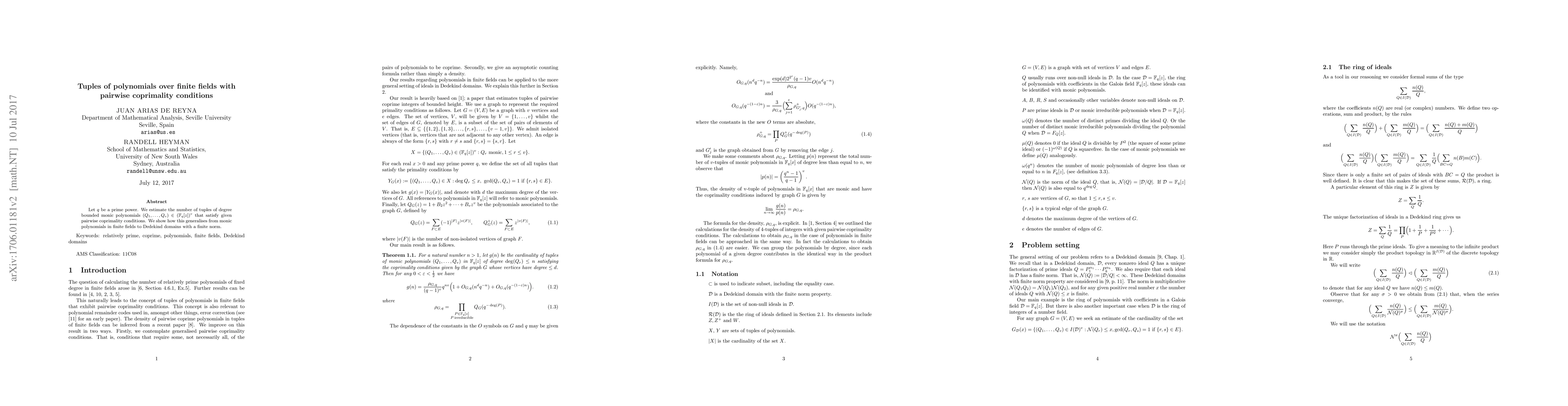 Let $q$ be a prime power. We estimate the number of tuples of degree bounded monic polynomials $(Q_1,\ldots,Q_v) \in (\mathbb{F}_q[z])^v$ that satisfy given pairwise coprimality conditions. We show how this generalises from monic polynomials in finite fields to Dedekind domains with finite norms.