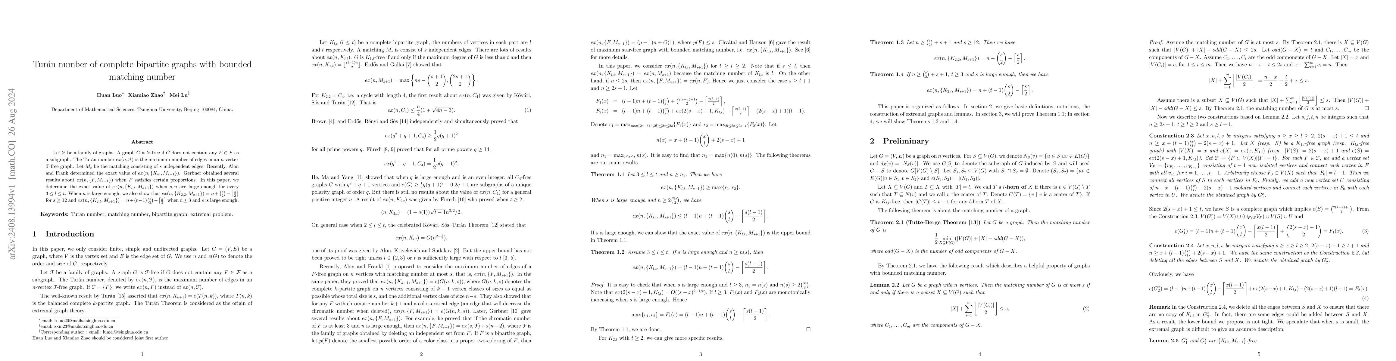 This paper determines the exact Turán number for complete bipartite graphs $K_{l,t}$ avoiding both matchings $M_{s+1}$ and certain subgraphs when $n$ and $s$ are sufficiently large. It also specifies the exact values for $ex(n,\{K_{2,2}, M_{s+1}\})$ and $ex(n,\{K_{2,t},M_{s+1}\})$ under specific conditions.