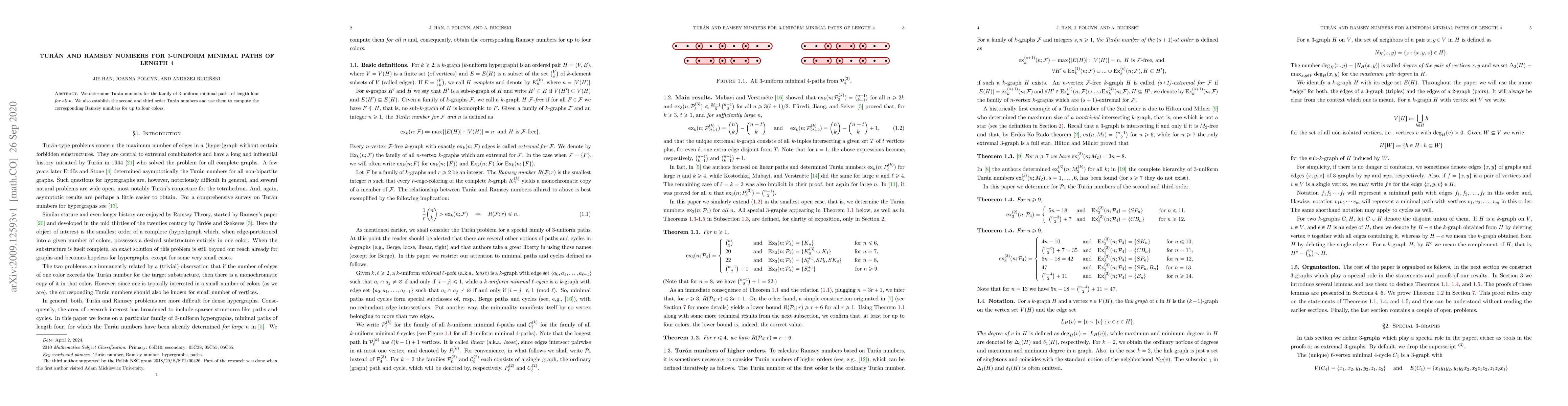 We determine Tur\'an numbers for the family of 3-uniform minimal paths of length four \emph{for all $n$}. We also establish the second and third order Tur\'an numbers and use them to compute the corresponding Ramsey numbers for up to four colors.