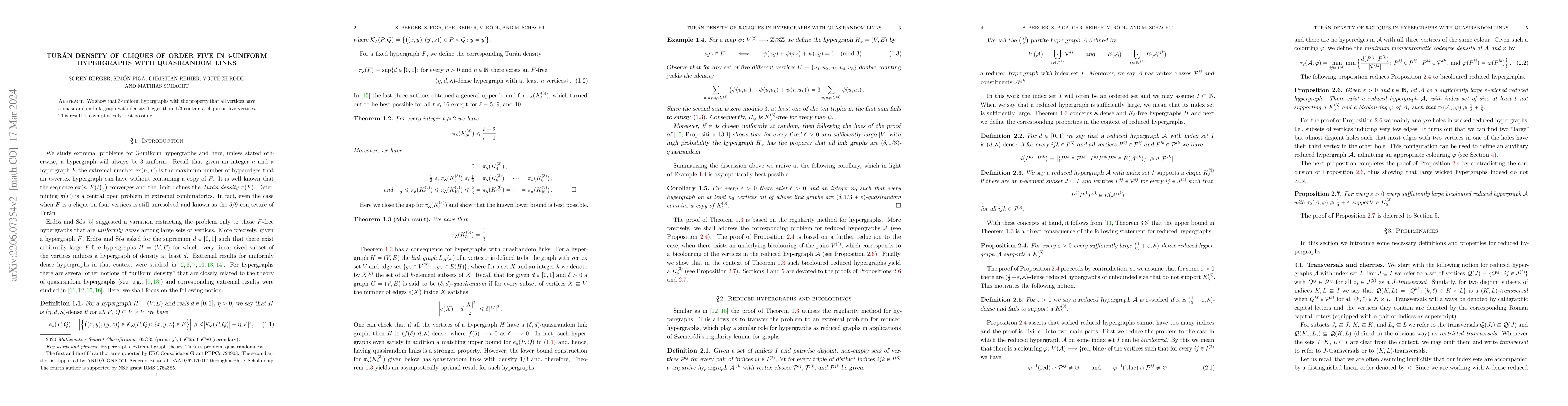Summary: This paper demonstrates that $3$-uniform hypergraphs with quasirandom link graphs denser than $1/3$ must contain a clique of order five, and this density threshold is optimal.