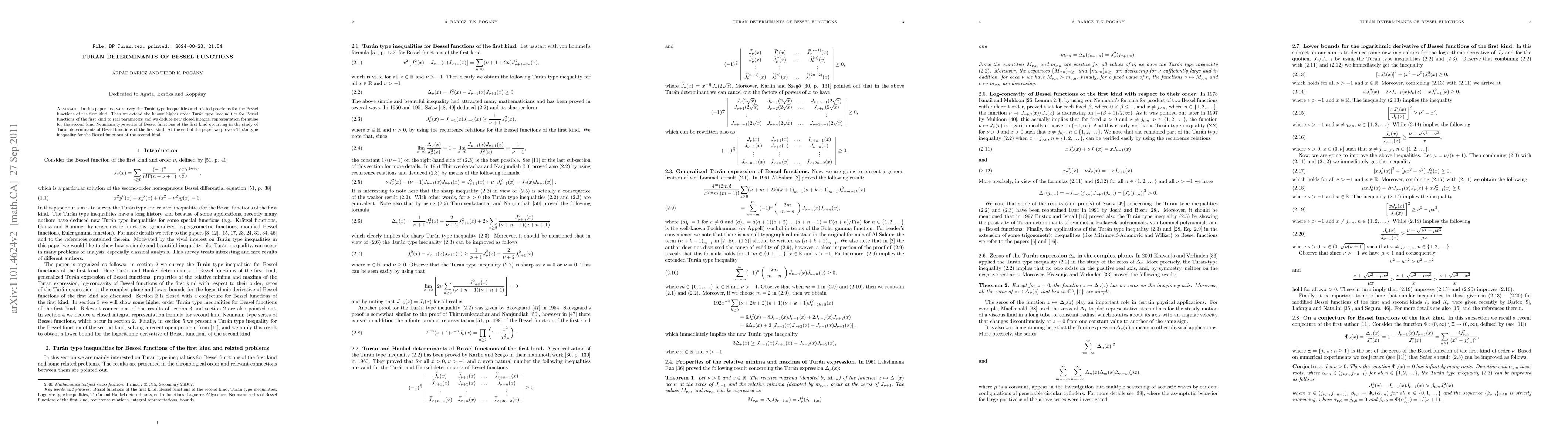 In this paper first we survey the Tur\'an type inequalities and related problems for the Bessel functions of the first kind. Then we extend the known higher order Tur\'an type inequalities for Bessel functions of the first kind to real parameters and we deduce new closed integral representation formulae for the second kind Neumann type series of Bessel functions of the first kind occurring in the study of Tur\'an determinants of Bessel functions of the first kind. At the end of the paper we prove a Tur\'an type inequality for the Bessel functions of the second kind.