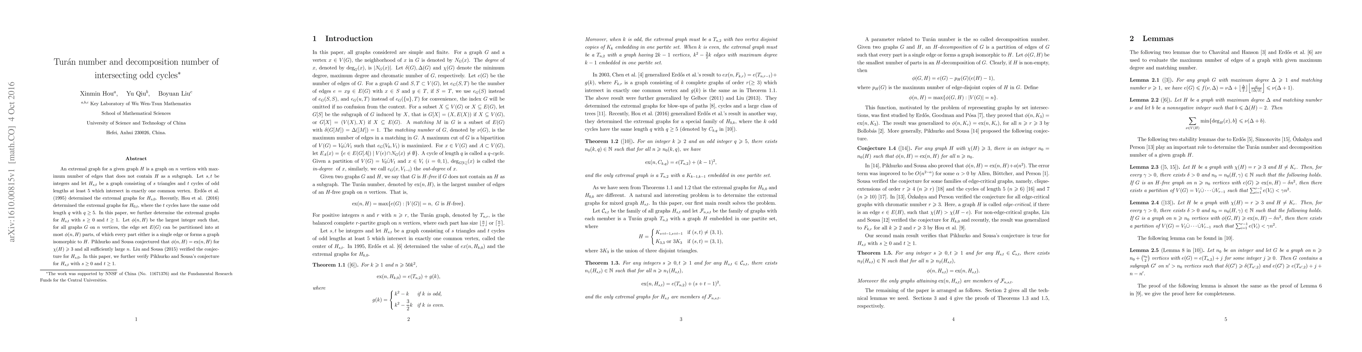 This paper determines the extremal graphs for $H_{s,t}$, which consists of $s$ triangles and $t$ intersecting odd cycles, and verifies Pikhurko and Sousa's conjecture that $\phi(n,H)=\ex(n,H)$ for these graphs, extending previous results for $H_{s,0}$ and $H_{0,t}$.