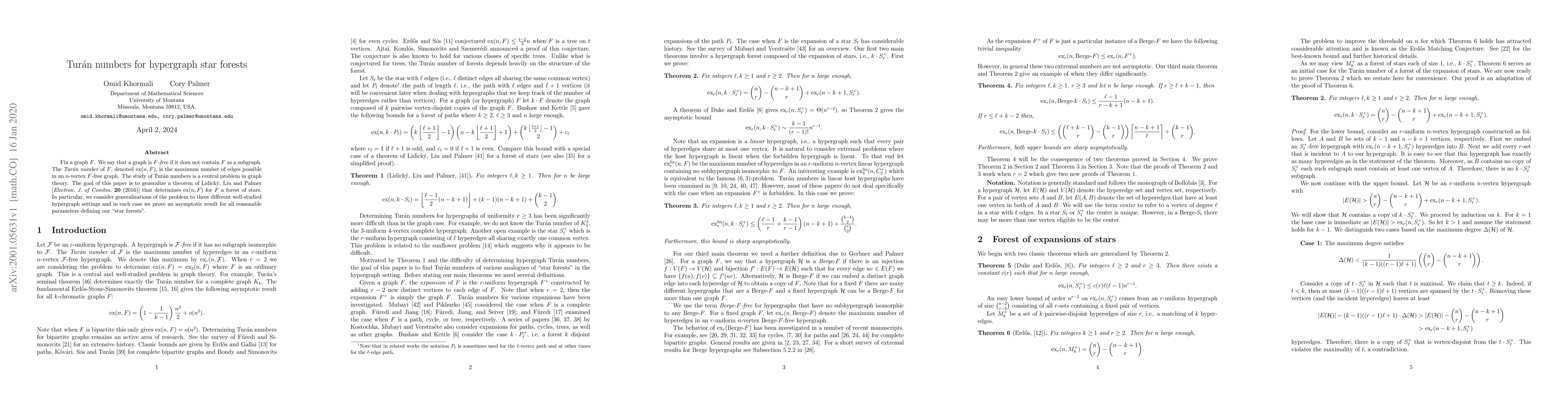 Fix a graph $F$. We say that a graph is {\it $F$-free} if it does not contain $F$ as a subgraph. The {\it Tur\'an number} of $F$, denoted $\mathrm{ex}(n,F)$, is the maximum number of edges possible in an $n$-vertex $F$-free graph. The study of Tur\'an numbers is a central problem in graph theory. The goal of this paper is to generalize a theorem of Lidick\'y, Liu and Palmer [{\it Electron.\ J.\ of Combin.}\ {\bf 20} (2016)] that determines $\mathrm{ex}(n,F)$ for $F$ a forest of stars. In particular, we consider generalizations of the problem to three different well-studied hypergraph settings and in each case we prove an asymptotic result for all reasonable parameters defining our "star forests".