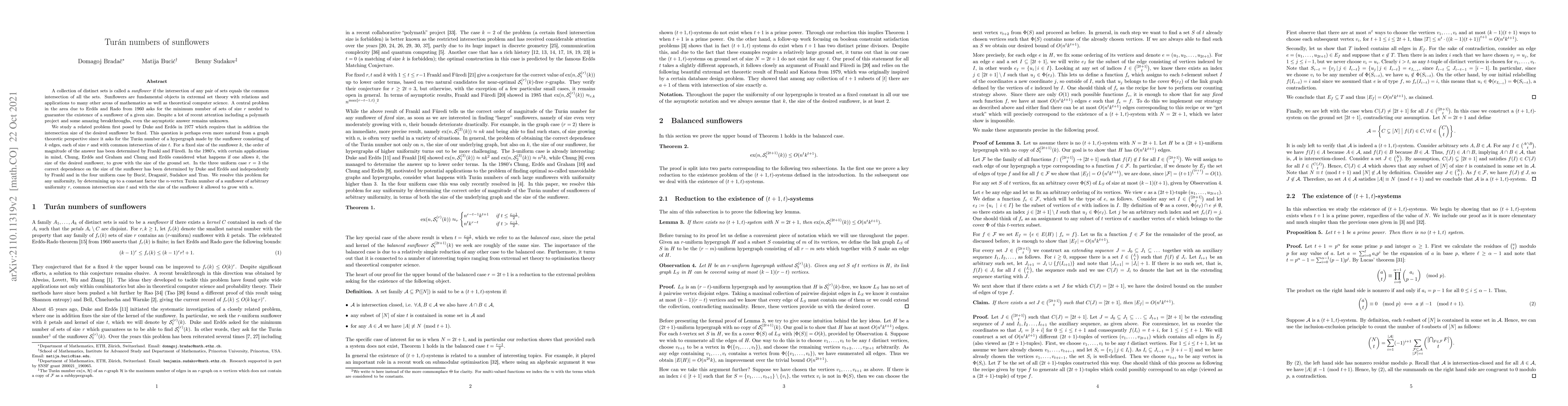 A collection of distinct sets is called a sunflower if the intersection of any pair of sets equals the common intersection of all the sets. Sunflowers are fundamental objects in extremal set theory with relations and applications to many other areas of mathematics as well as theoretical computer science. A central problem in the area due to Erd\H{o}s and Rado from 1960 asks for the minimum number of sets of size $r$ needed to guarantee the existence of a sunflower of a given size. Despite a lot of recent attention including a polymath project and some amazing breakthroughs, even the asymptotic answer remains unknown. We study a related problem first posed by Duke and Erd\H{o}s in 1977 which requires that in addition the intersection size of the desired sunflower be fixed. This question is perhaps even more natural from a graph theoretic perspective since it asks for the Tur\'an number of a hypergraph made by the sunflower consisting of $k$ edges, each of size $r$ and with common intersection of size $t$. For a fixed size of the sunflower $k$, the order of magnitude of the answer has been determined by Frankl and F\"{u}redi. In the 1980's, with certain applications in mind, Chung, Erd\H{o}s and Graham and Chung and Erd\H{o}s considered what happens if one allows $k$, the size of the desired sunflower, to grow with the size of the ground set. In the three uniform case $r=3$ the correct dependence on the size of the sunflower has been determined by Duke and Erd\H{o}s and independently by Frankl and in the four uniform case by Buci\'{c}, Dragani\'{c}, Sudakov and Tran. We resolve this problem for any uniformity, by determining up to a constant factor the $n$-vertex Tur\'an number of a sunflower of arbitrary uniformity $r$, common intersection size $t$ and with the size of the sunflower $k$ allowed to grow with $n$.