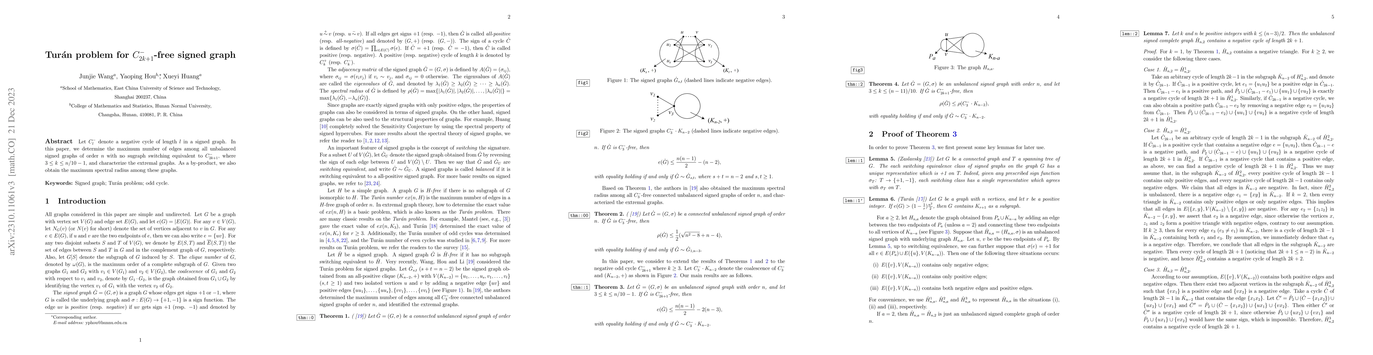 In this paper, we study the Tur\'{a}n problem for $C_{2k+1}^{-}$. Suppose that $\dot{G}$ is an unbalanced signed graph of order $n$ with $e(\dot{G})$ edges. Let $\lambda_{1} (\dot{G})$ be the largest eigenvalue of $\dot{G}$, and $C_{2k+1}^{-}$ be the set of the negative cycle with length $2k+1$($3 \le k \le \frac{n}{15}$). We prove that if $\dot{G}$ is a $C_{2k+1}^{-}$-free unbalanced signed graph, then $e(\dot{G}) \le e(C_{3}^{-} \cdot K_{n-2})$ and $\lambda_{1}(\dot{G}) \le \lambda_{1}(C_{3}^{-} \cdot K_{n-2})$, with equality holding if and only if $\dot{G}$ is switching equivalent to $C_{3}^{-} \cdot K_{n-2}$.