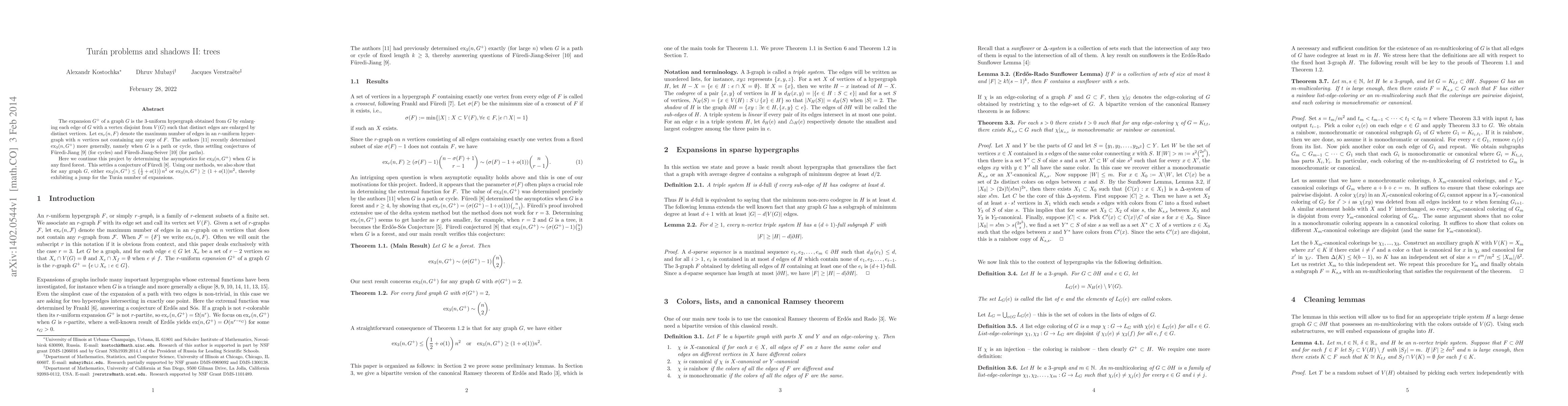 The expansion $G^+$ of a graph $G$ is the 3-uniform hypergraph obtained from $G$ by enlarging each edge of $G$ with a vertex disjoint from $V(G)$ such that distinct edges are enlarged by distinct vertices. Let ex$_r(n,F)$ denote the maximum number of edges in an $r$-uniform hypergraph with $n$ vertices not containing any copy of $F$. The authors \cite{KMV} recently determined ex$_3(n,G^+)$ more generally, namely when $G$ is a path or cycle, thus settling conjectures of F\"uredi-Jiang \cite{FJ} (for cycles) and F\"uredi-Jiang-Seiver \cite{FJS} (for paths). Here we continue this project by determining the asymptotics for ex$_3(n,G^+)$ when $G$ is any fixed forest. This settles a conjecture of F\"uredi \cite{Furedi}. Using our methods, we also show that for any graph $G$, either ex$_3(n,G^{+}) \leq \left(\frac{1}{2} + o(1)\right)n^2$ or ex$_3(n,G^{+}) \geq (1 + o(1))n^2,$ thereby exhibiting a jump for the Tur\'an number of expansions.