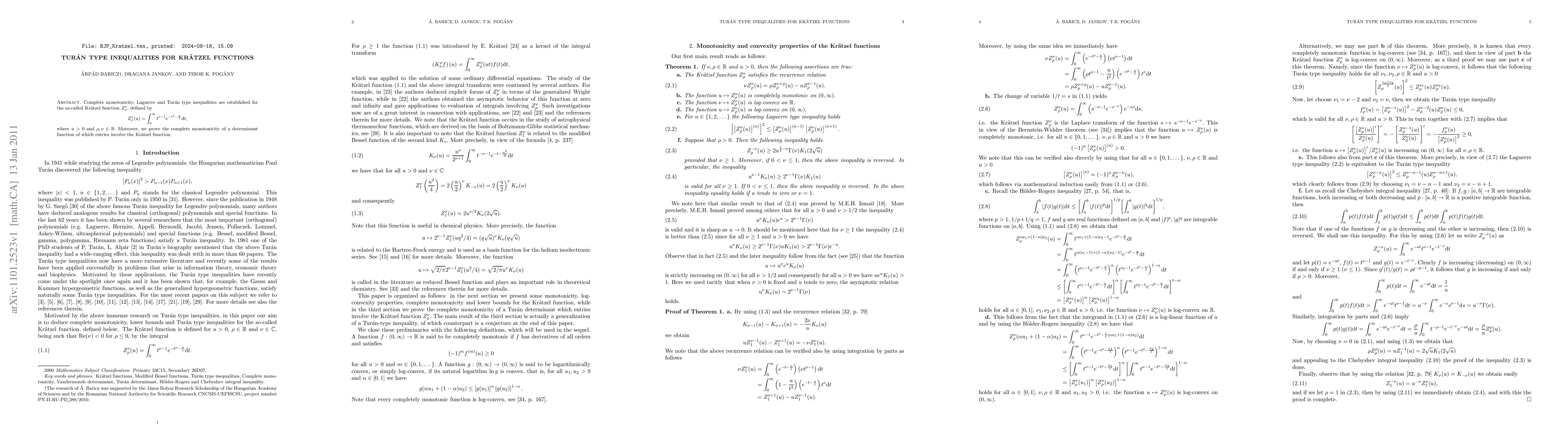 Researchers established Turan type inequalities for Kratzel functions, a mathematical concept used to analyze certain types of integrals, proving their complete monotonicity and other key properties.