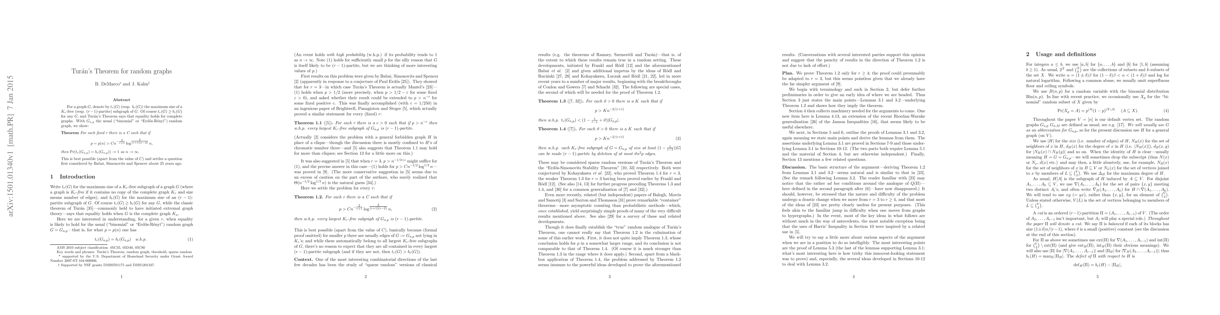 For a graph $G$, denote by $t_r(G)$ (resp. $b_r(G)$) the maximum size of a $K_r$-free (resp. $(r-1)$-partite) subgraph of $G$. Of course $t_r(G) \geq b_r(G)$ for any $G$, and Tur\'an's Theorem says that equality holds for complete graphs. With $G_{n,p}$ the usual ("binomial" or "Erd\H{o}s-R\'enyi") random graph, we show: For each fixed r there is a C such that if \[ p=p(n) > Cn^{-\tfrac{2}{r+1}}\log^{\tfrac{2}{(r+1)(r-2)}}n, \] then $\Pr(t_r(G_{n,p})=b_r(G_{n,p}))\rightarrow 1$ as $n\rightarrow\infty$. This is best possible (apart from the value of $C$) and settles a question first considered by Babai, Simonovits and Spencer about 25 years ago.
