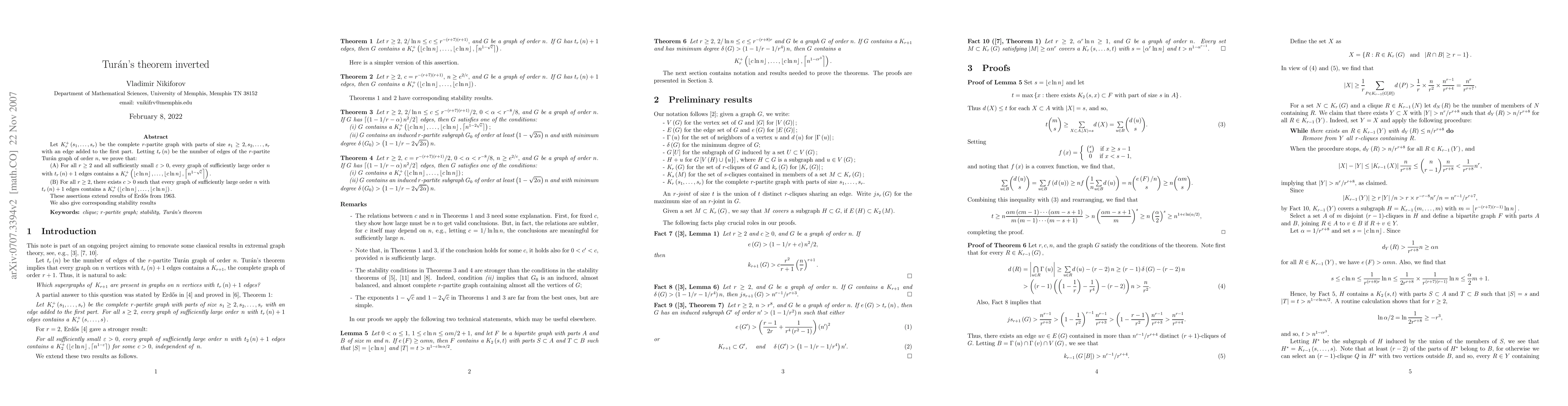 Researchers have extended Turan's theorem to show that graphs with more edges than the r-partite Turan graph can contain larger complete subgraphs, building on work started in 1963.