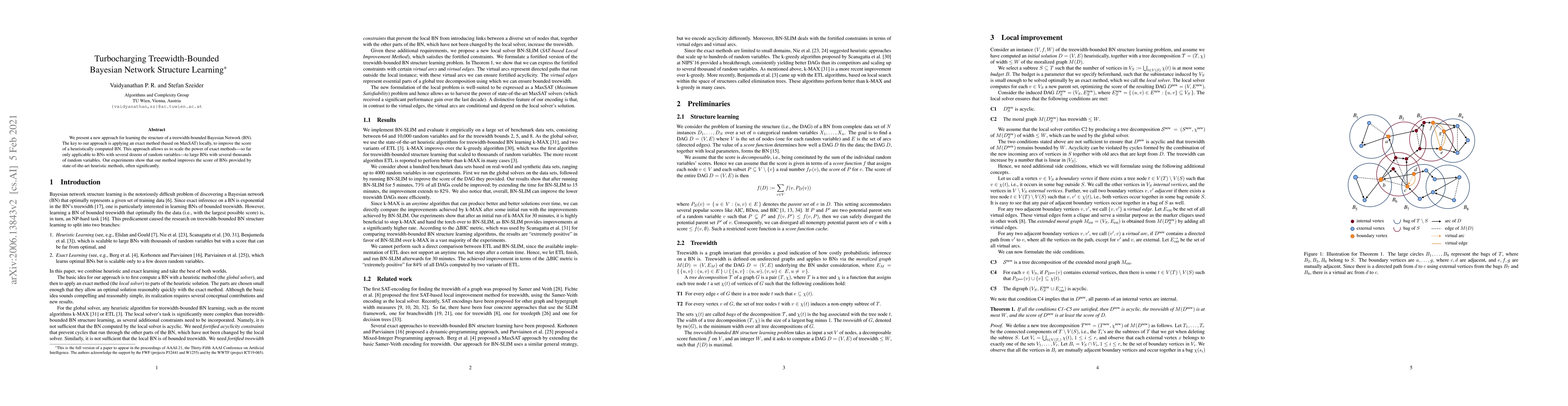 We present a new approach for learning the structure of a treewidth-bounded Bayesian Network (BN). The key to our approach is applying an exact method (based on MaxSAT) locally, to improve the score of a heuristically computed BN. This approach allows us to scale the power of exact methods -- so far only applicable to BNs with several dozens of random variables -- to large BNs with several thousands of random variables. Our experiments show that our method improves the score of BNs provided by state-of-the-art heuristic methods, often significantly.