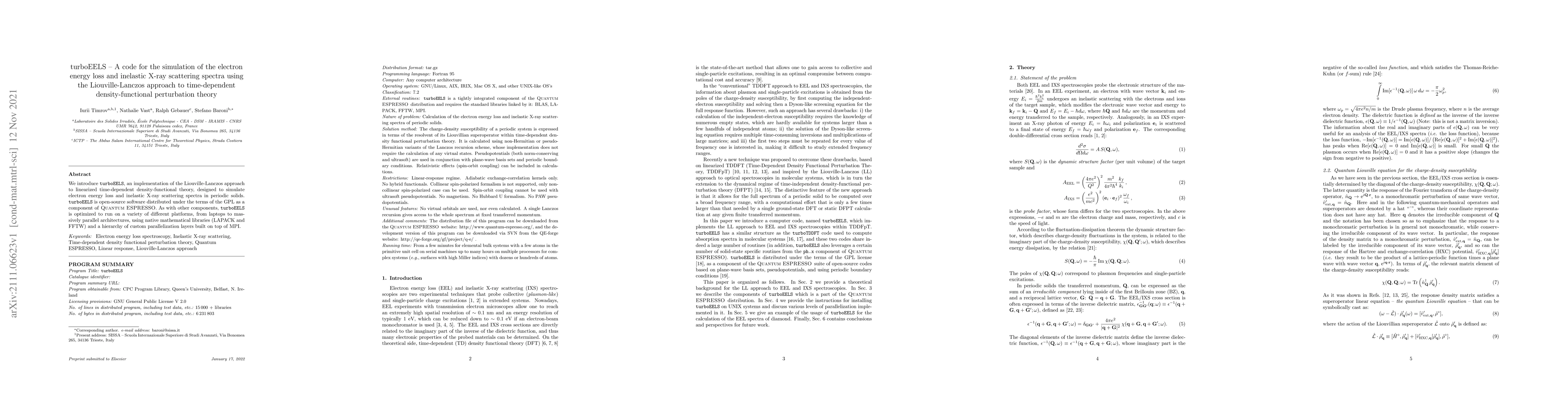 A new open-source software called turboEELS simulates electron energy loss and inelastic X-ray scattering spectra in materials using a advanced computational method, allowing for more accurate predictions of material properties.