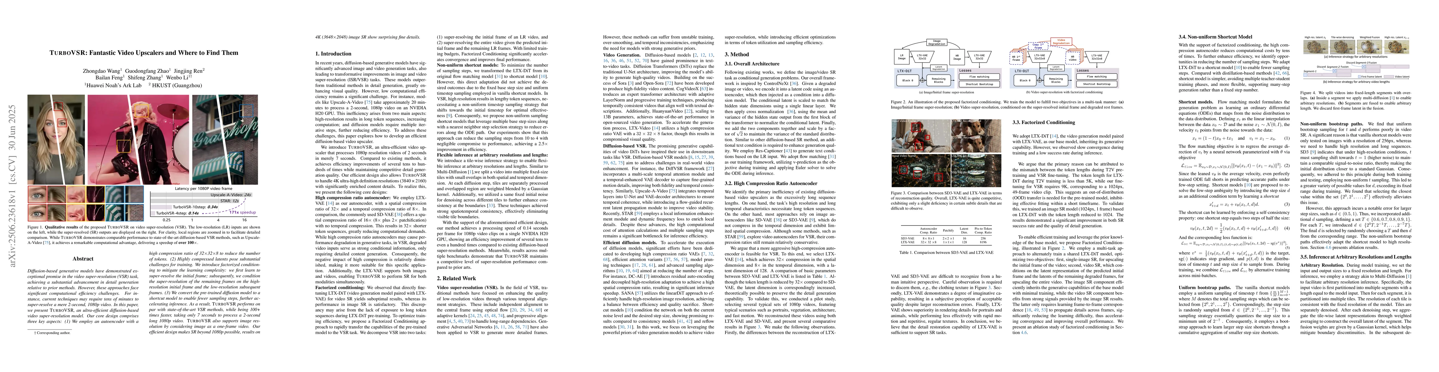 Diffusion-based generative models have demonstrated exceptional promise in the video super-resolution (VSR) task, achieving a substantial advancement in detail generation relative to prior methods. However, these approaches face significant computational efficiency challenges. For instance, current techniques may require tens of minutes to super-resolve a mere 2-second, 1080p video. In this paper, we present TurboVSR, an ultra-efficient diffusion-based video super-resolution model. Our core design comprises three key aspects: (1) We employ an autoencoder with a high compression ratio of 32$\times$32$\times$8 to reduce the number of tokens. (2) Highly compressed latents pose substantial challenges for training. We introduce factorized conditioning to mitigate the learning complexity: we first learn to super-resolve the initial frame; subsequently, we condition the super-resolution of the remaining frames on the high-resolution initial frame and the low-resolution subsequent frames. (3) We convert the pre-trained diffusion model to a shortcut model to enable fewer sampling steps, further accelerating inference. As a result, TurboVSR performs on par with state-of-the-art VSR methods, while being 100+ times faster, taking only 7 seconds to process a 2-second long 1080p video. TurboVSR also supports image resolution by considering image as a one-frame video. Our efficient design makes SR beyond 1080p possible, results on 4K (3648$\times$2048) image SR show surprising fine details.