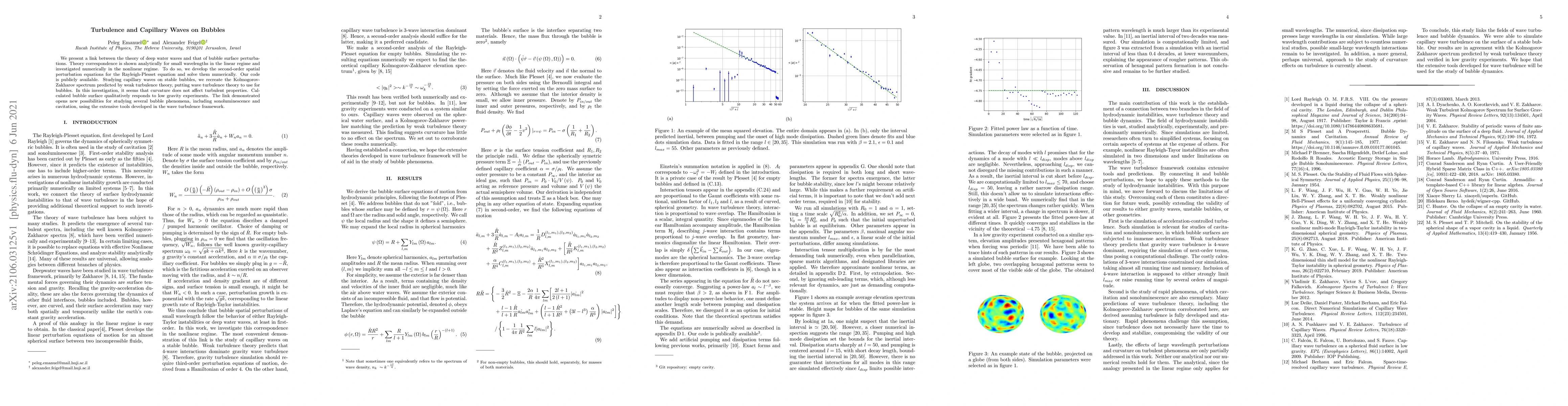 This paper establishes a theoretical connection between deep water wave dynamics and bubble surface perturbations, showing correspondence in the linear regime and numerically exploring the nonlinear regime. The study uses perturbation equations to model capillary waves on bubbles and finds that curvature does not affect turbulent properties, suggesting new avenues for studying phenomena like sonoluminescence and cavitation.