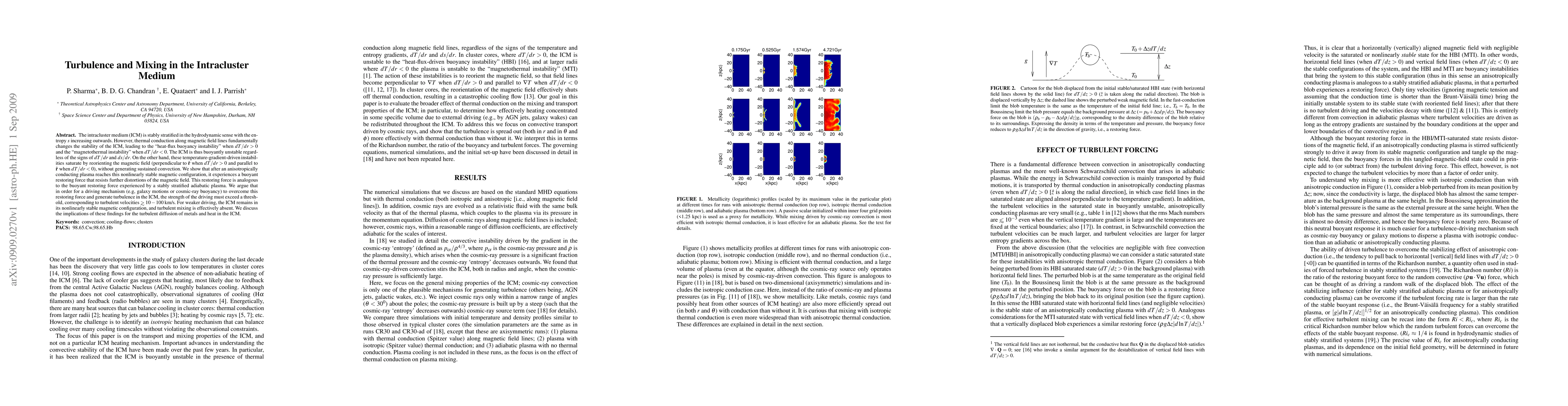 This paper investigates the instabilities in the intracluster medium (ICM) driven by thermal conduction along magnetic fields, showing that these instabilities stabilize without generating sustained convection. It concludes that turbulence and mixing in the ICM require driving forces exceeding a threshold, leading to turbulent velocities of 10-100 km/s, otherwise, the ICM remains stable with minimal turbulent mixing.