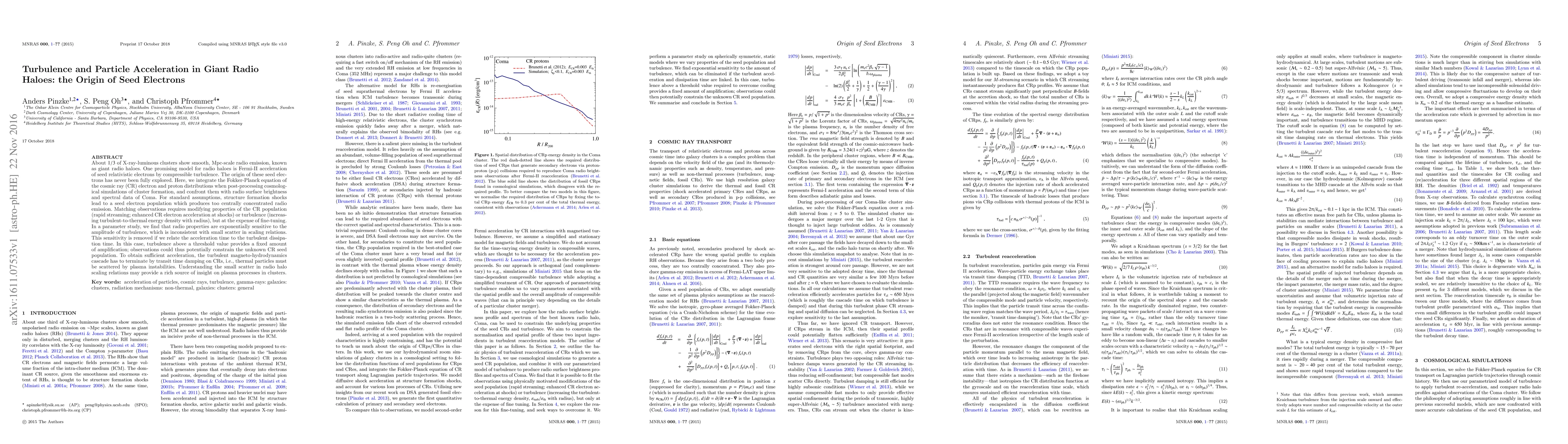 Research explores the origin of seed electrons in giant radio haloes, finding that turbulence acceleration is key to producing central emission, with sensitivity to turbulent amplitude that may constrain cluster properties.