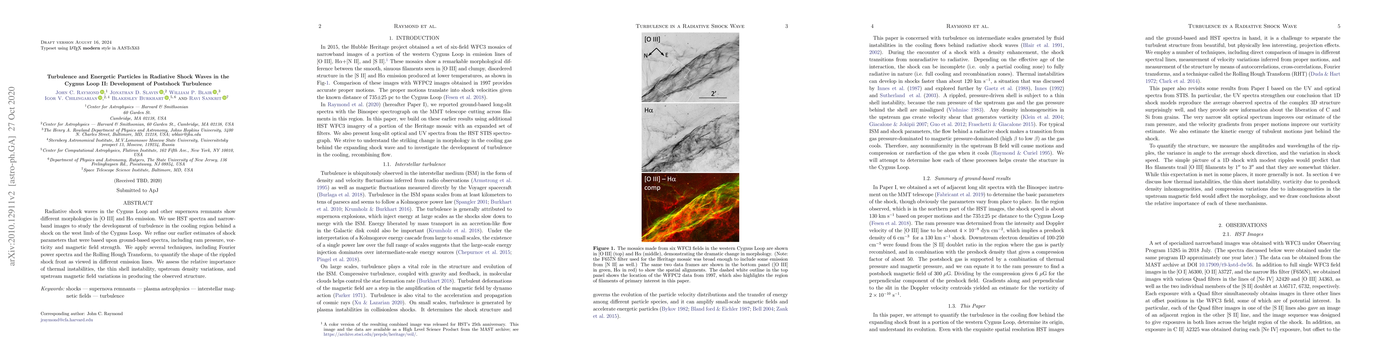 This paper investigates the turbulence and particle acceleration in radiative shock waves within the Cygnus Loop, using HST data to refine shock parameters and apply advanced techniques to quantify shock front morphology. The study assesses the impact of various instabilities and upstream conditions on the observed shock structure.