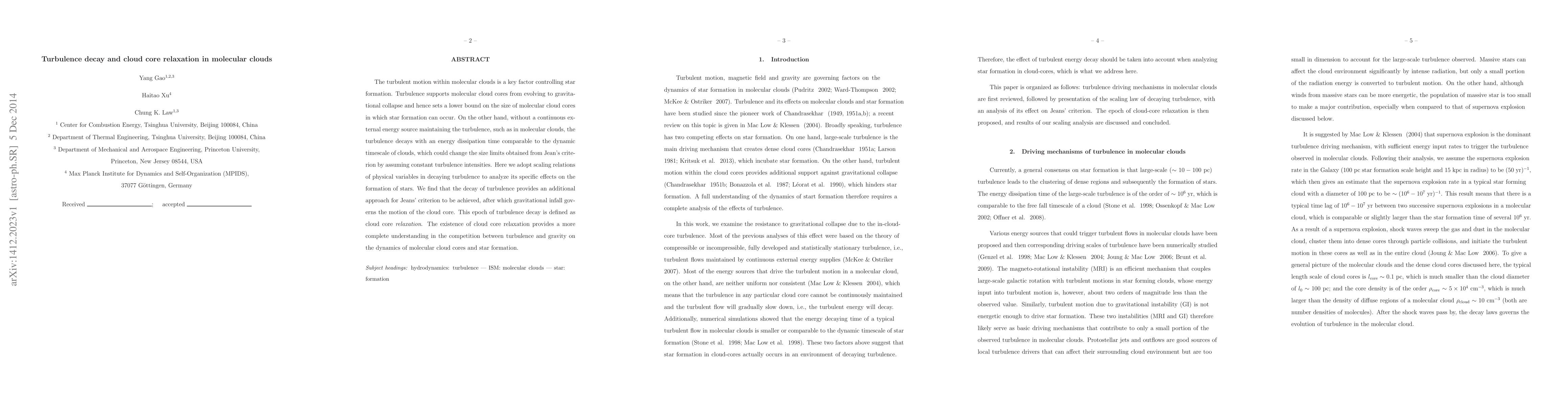 This research investigates how turbulence decay influences the relaxation of molecular cloud cores, impacting star formation dynamics. The study finds that as turbulence decays, it allows the cloud core to reach a state where gravitational forces dominate, leading to star formation.