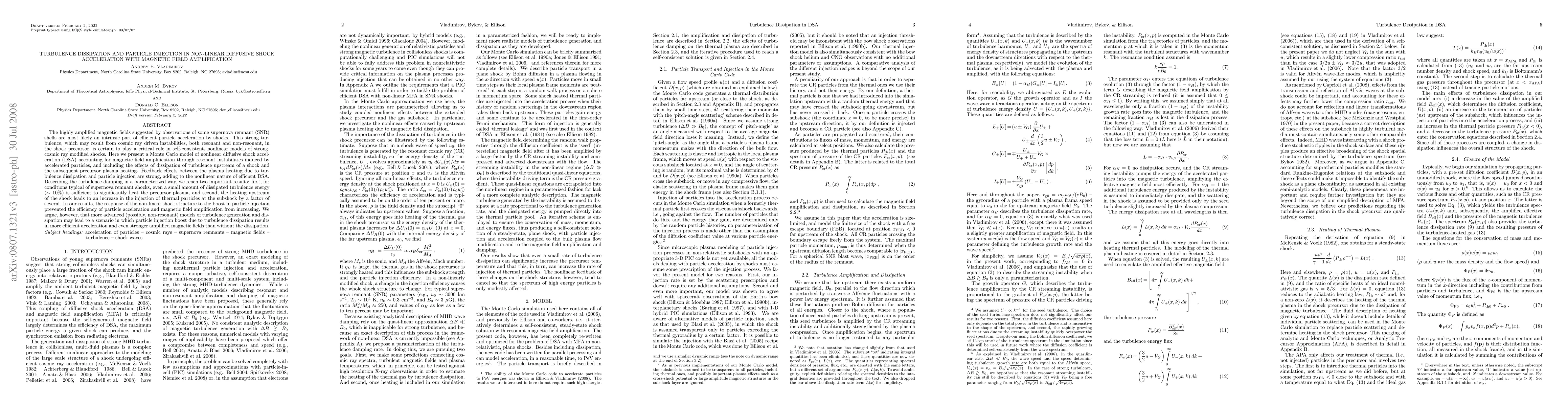 This paper presents a Monte Carlo model for nonlinear diffusive shock acceleration, incorporating magnetic field amplification and turbulence dissipation. It finds that even a small amount of dissipated turbulence can significantly heat the precursor plasma, enhancing particle injection, but this does not increase the overall efficiency of particle acceleration and magnetic field amplification.