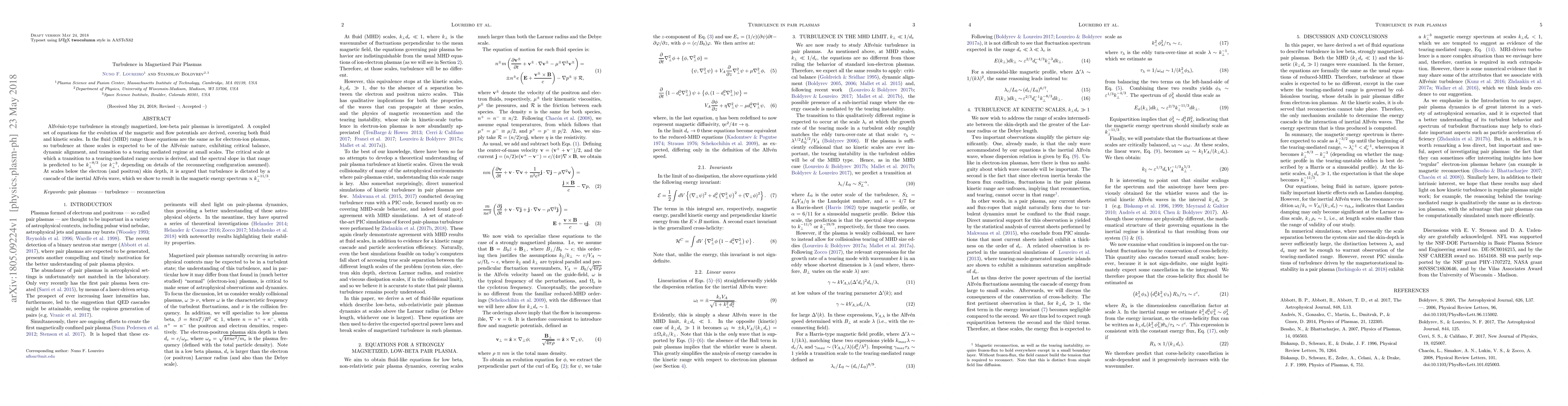 A coupled set of equations for the evolution of magnetic and flow potentials in magnetized pair plasmas, covering both fluid (MHD) and kinetic scales, was derived. These equations were then used to predict spectral power laws and break scales of magnetized turbulence in such plasmas.