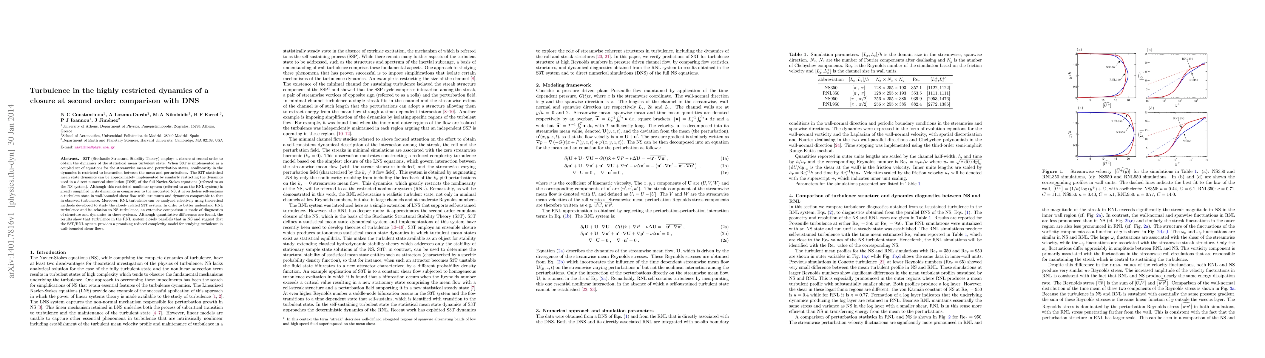 This paper compares turbulence dynamics in a simplified model (RNL system) derived from the full Navier-Stokes equations with those in the Stochastic Structural Stability Theory (S3T). Despite its reduced complexity, the RNL system sustains turbulence with structures and dynamics similar to full turbulence, indicating its potential as a reduced complexity model for studying wall-bounded shear flow turbulence.