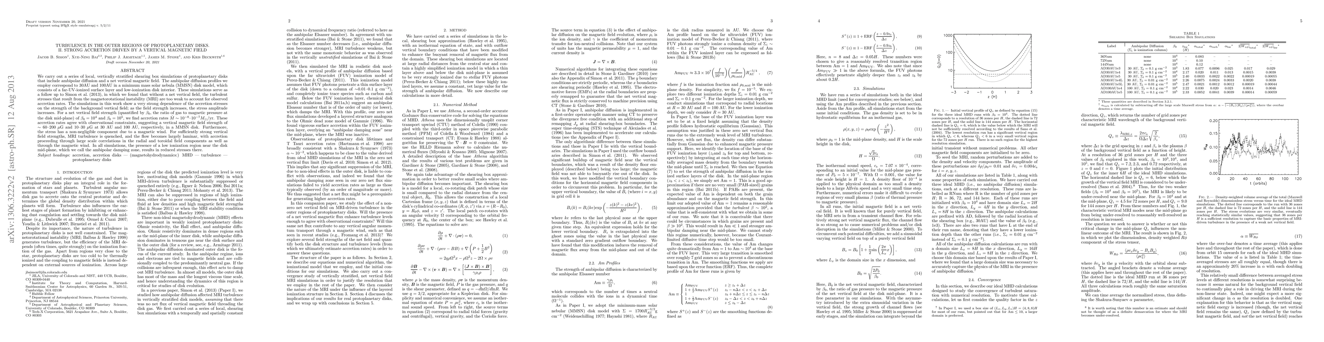 This paper investigates turbulence in protoplanetary disks using simulations that include ambipolar diffusion and a vertical magnetic field, finding that a strong vertical magnetic field enhances accretion rates to match observations. The study suggests that vertical magnetic field strengths between 60-200 microgauss at 30AU and 10-30 microgauss at 100AU in a minimum mass solar nebula disk model are required to achieve these rates.