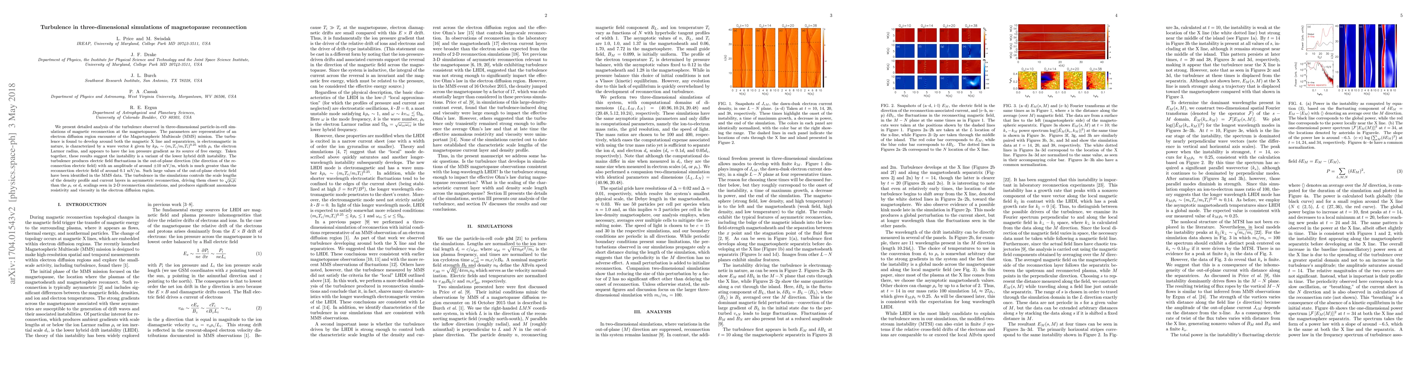 This paper analyzes turbulence in three-dimensional simulations of magnetopause reconnection, revealing electromagnetic turbulence near the magnetic X line and separatrices. The turbulence is driven by ion pressure gradients and exhibits strong out-of-plane electric field fluctuations, significantly impacting reconnection dynamics and electron diffusion region properties.