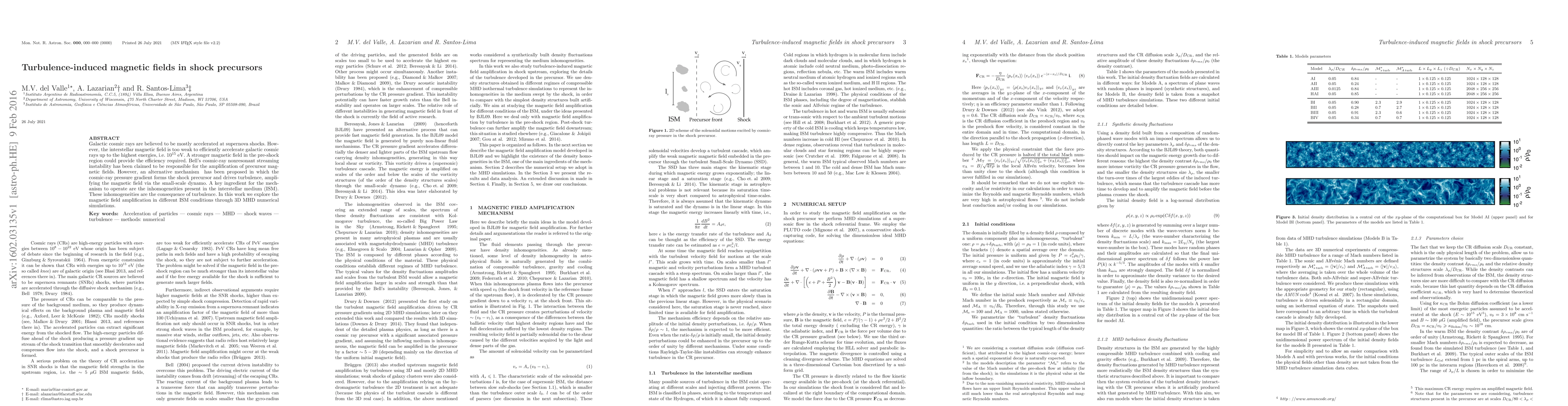Galactic cosmic rays are believed to be mostly accelerated at supernova shocks. However, the interstellar magnetic field is too weak to efficiently accelerate galactic cosmic rays up to the highest energies, i.e. $10^{15}$ eV. A stronger magnetic field in the pre-shock region could provide the efficiency required. Bell's cosmic-ray nonresonant streaming instability has been claimed to be responsible for the amplification of precursor magnetic fields. However, an alternative mechanism has been proposed in which the cosmic-ray pressure gradient forms the shock precursor and drives turbulence, amplifying the magnetic field via the small-scale dynamo. A key ingredient for the mechanism to operate are the inhomogeneities present in the interstellar medium (ISM). These inhomogeneities are the consequence of turbulence. In this work we explore the magnetic field amplification in different ISM conditions through 3D MHD numerical simulations.