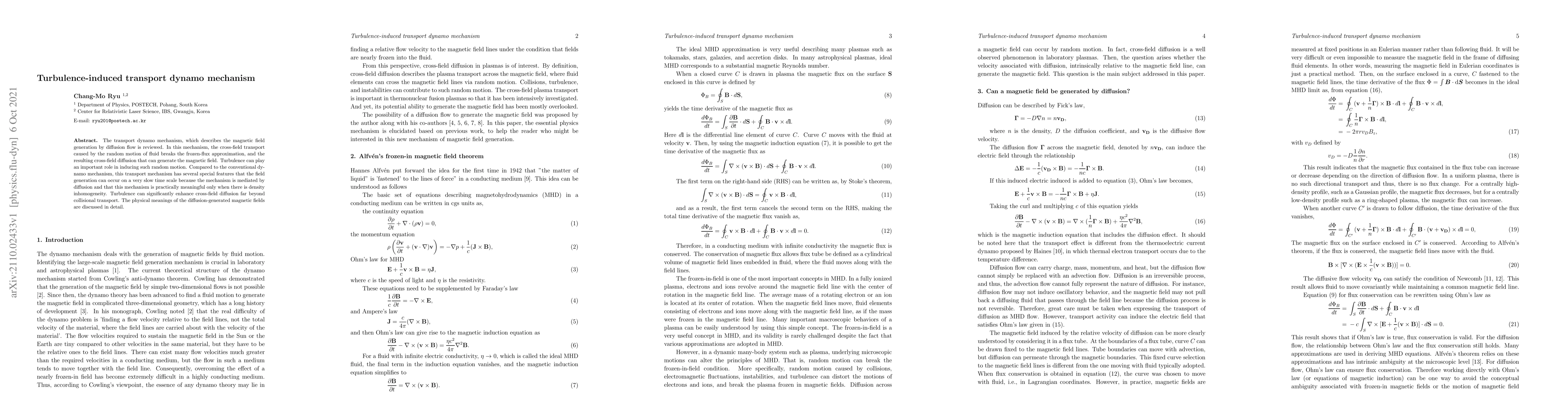 Research reveals a transport dynamo mechanism where turbulence induces cross-field diffusion, generating magnetic fields on a slow time scale and requiring density inhomogeneity. This process enhances cross-field diffusion beyond collisional transport.