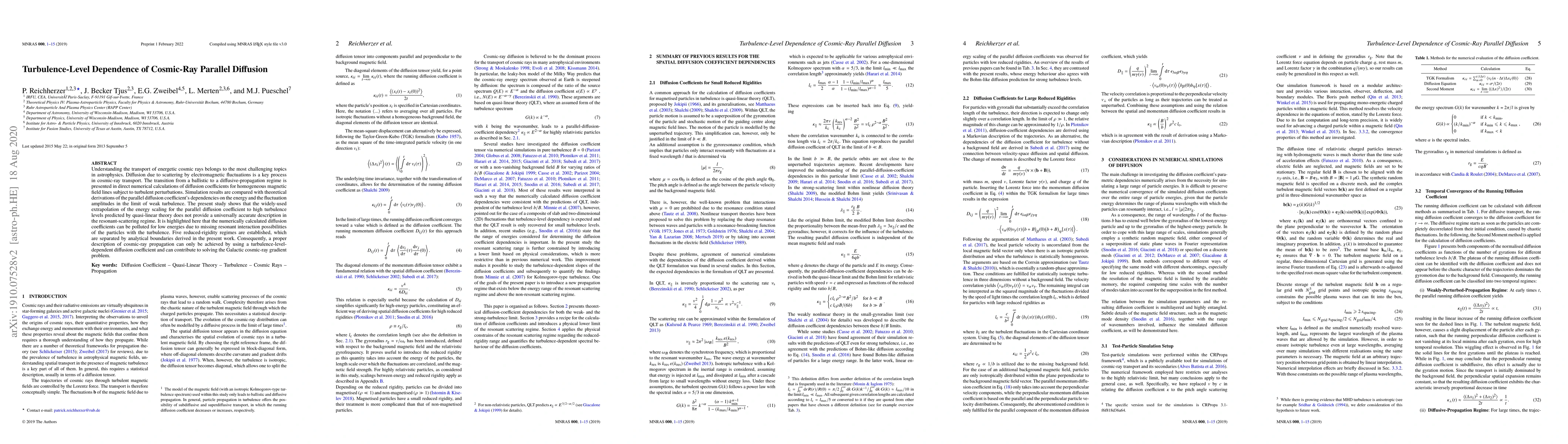 A numerical simulation was performed using CR-Propa to study the parallel diffusion of cosmic rays in turbulent magnetic fields.