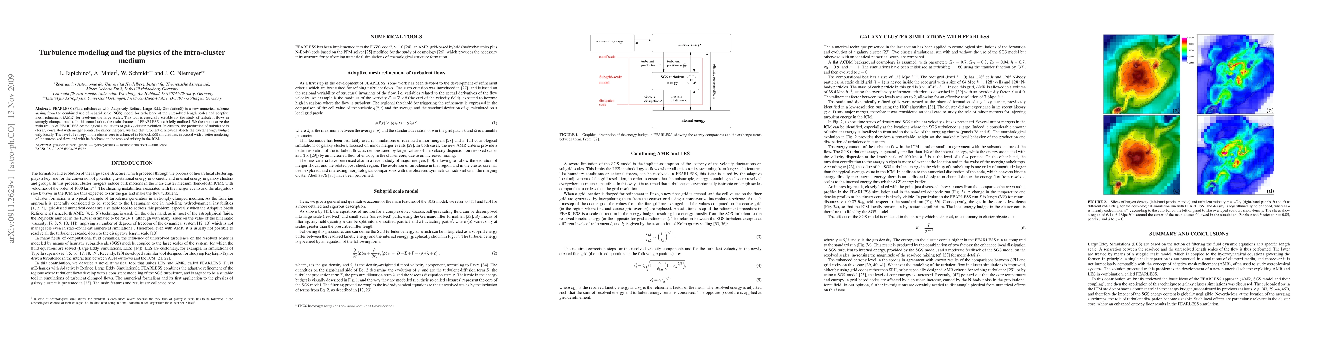 FEARLESS (Fluid mEchanics with Adaptively Refined Large Eddy SimulationS) is a new numerical scheme arising from the combined use of subgrid scale (SGS) model for turbulence at the unresolved length scales and adaptive mesh refinement (AMR) for resolving the large scales. This tool is especially suitable for the study of turbulent flows in strongly clumped media. In this contribution, the main features of FEARLESS are briefly outlined. We then summarize the main results of FEARLESS cosmological simulations of galaxy cluster evolution. In clusters, the production of turbulence is closely correlated with merger events; for minor mergers, we find that turbulent dissipation affects the cluster energy budget only locally. The level of entropy in the cluster core is enhanced in FEARLESS simulations, in accord with a better modeling of the unresolved flow, and with its feedback on the resolved mixing in the ICM.