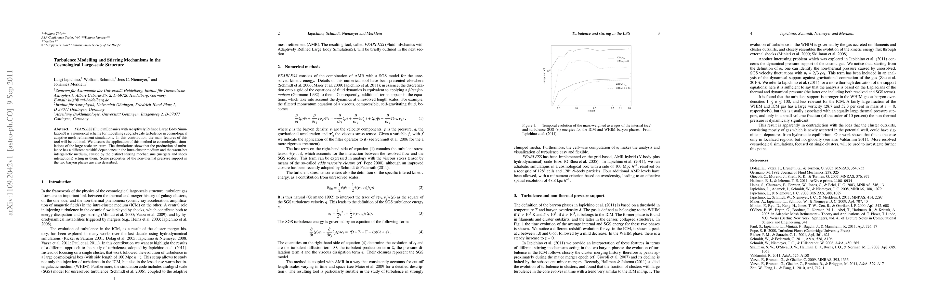 FEARLESS (Fluid mEchanics with Adaptively Refined Large Eddy SimulationS) is a numerical scheme for modelling subgrid-scale turbulence in cosmological adaptive mesh refinement simulations. In this contribution, the main features of this tool will be outlined. We discuss the application of this method to cosmological simulations of the large-scale structure. The simulations show that the production of turbulence has a different redshift dependence in the intra-cluster medium and the warm-hot intergalactic medium, caused by the distinct stirring mechanisms (mergers and shock interactions) acting in them. Some properties of the non-thermal pressure support in the two baryon phases are also described.