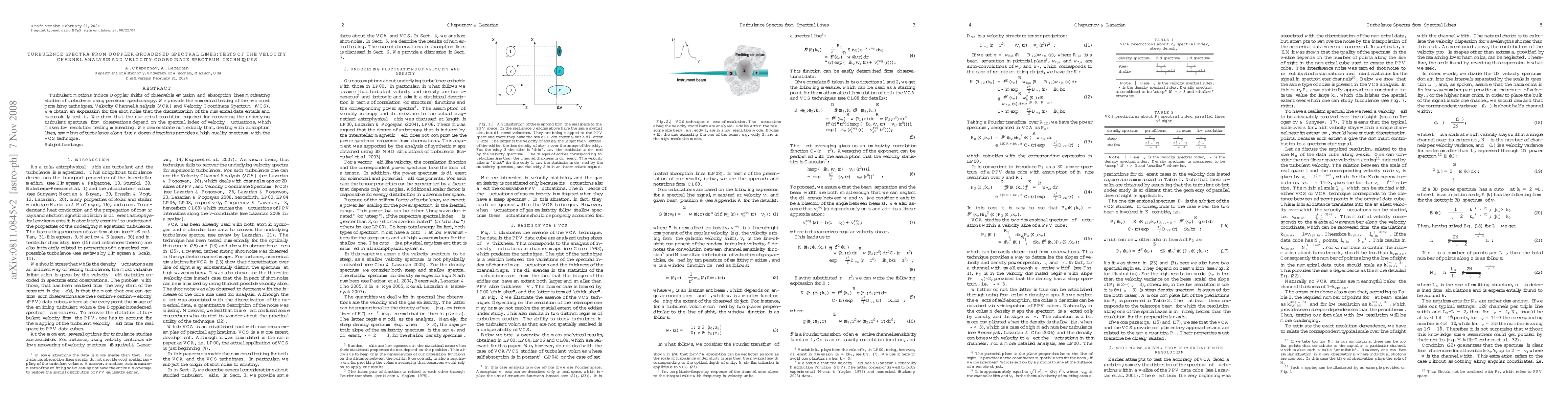 This paper tests two techniques, Velocity Channel Analysis (VCA) and Velocity Coordinate Spectrum (VCS), for analyzing turbulence using Doppler-broadened spectral lines. It finds that numerical resolution significantly affects the recovery of the turbulent spectrum, and demonstrates that VCS can yield high-quality spectra with minimal sampling directions.