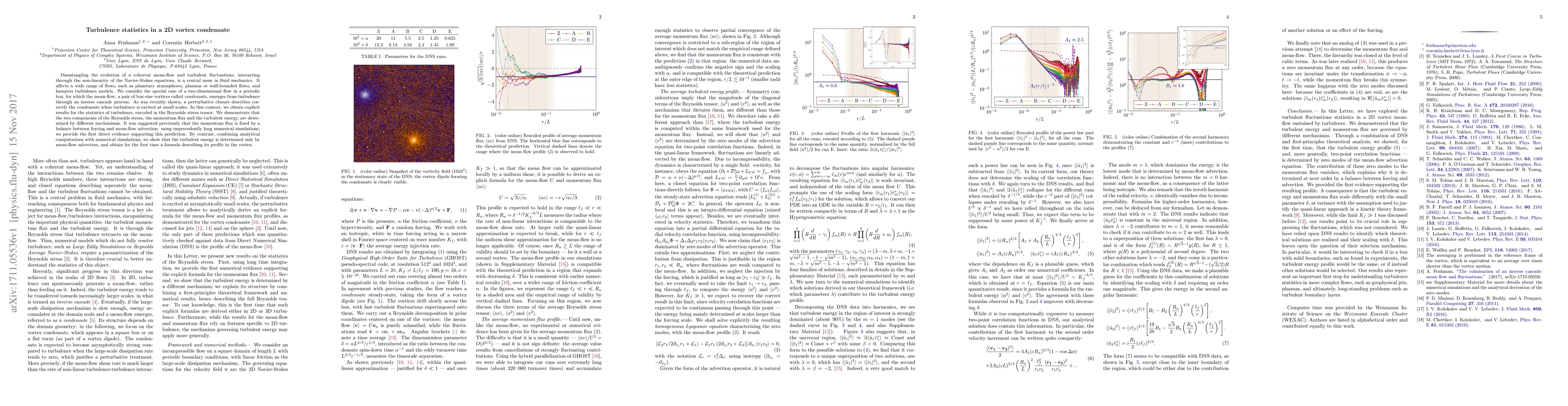 Researchers studied a specific type of fluid flow called a 2D vortex condensate, finding that turbulent fluctuations and mean-flow are separated into distinct mechanisms, with the momentum flux driven by forcing and advection, but the turbulent energy only affected by advection.