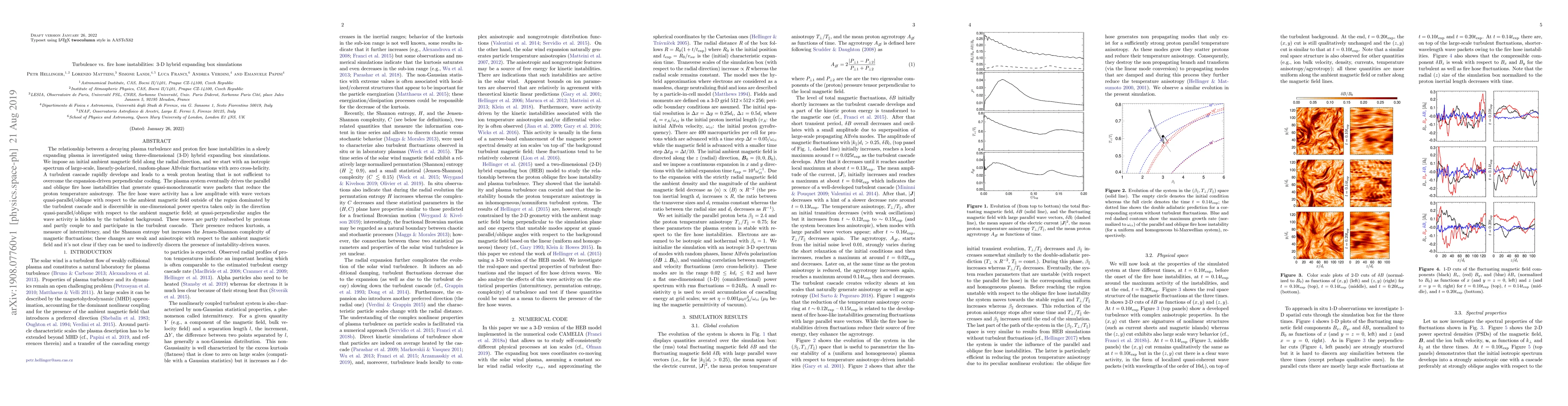 This study investigates the interplay between plasma turbulence and proton fire hose instabilities in a slowly expanding plasma using 3-D hybrid simulations. The turbulence reduces proton temperature anisotropy, while fire hose instabilities generate low-amplitude waves, partly reabsorbed by protons and influencing the turbulent cascade.