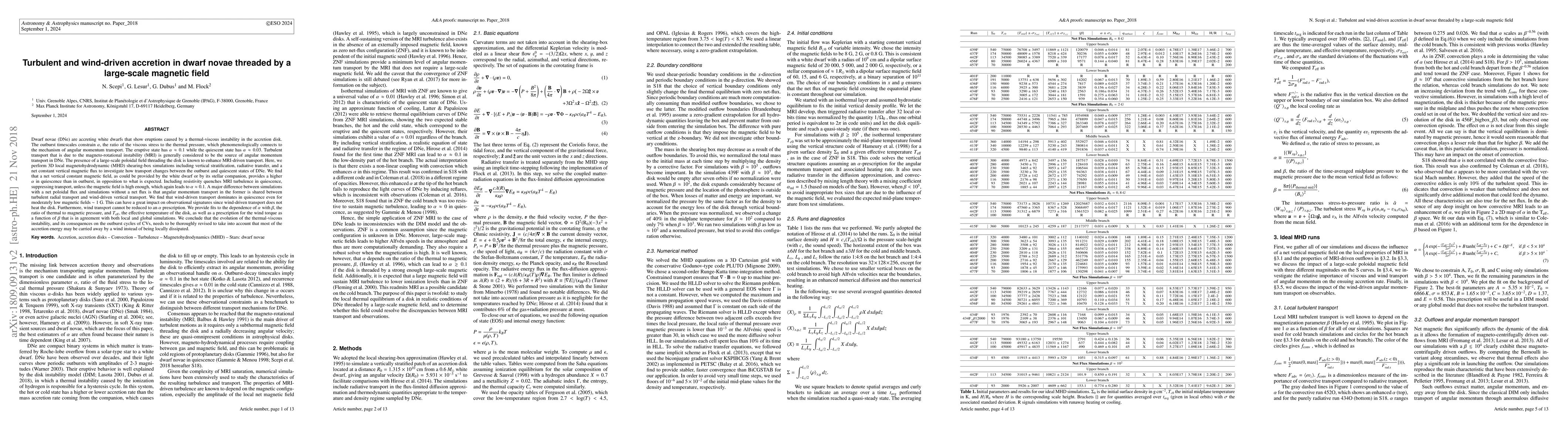 Dwarf novae (DNe) are accreting white dwarfs that show eruptions due to a thermal-viscous instability in the accretion disk. The outburst timescales constrain $\alpha$, the ratio of the viscous stress to the thermal pressure, and so the mechanism of angular momentum transport. The eruptive state has $\alpha\approx0.1$ while the quiescent state has $\alpha\approx0.03$. Turbulent transport due to the magneto-rotational instability (MRI) is generally considered to be the source of angular momentum transport in DNe. Here, we perform 3D local magnetohydrodynamic (MHD) shearing box simulations including vertical stratification, radiative transfer and a net constant vertical magnetic flux to investigate how transport changes between the outburst and quiescent states of DNe. We find that a constant $B_z$ provides a higher $\alpha$ in quiescence than in outburst, in opposition to what is expected. Including resistivity quenches MRI turbulence in quiescence, suppressing transport, unless the magnetic field is high enough, which again leads to $\alpha\approx0.1$. A major difference between simulations with a net poloidal flux and simulations without is that angular momentum transport in the former is shared between turbulent and wind-driven transport. We find that wind-driven transport dominates in quiescence even for low magnetic fields $\sim 1$ G. This can have a major impact on observational signatures since wind-driven transport does not heat the disk. Furthermore, wind transport cannot be reduced to an $\alpha$ prescription. We provide fits for $\alpha$ and the wind torque with $\beta$, ratio of thermal to magnetic pressure. We conclude that the evolution of the thermal-viscous instability, and its consequences on the outburst cycles of CVs, needs to be seriously revised to take into account that most of the accretion energy may be carried away by a wind instead of being locally dissipated.