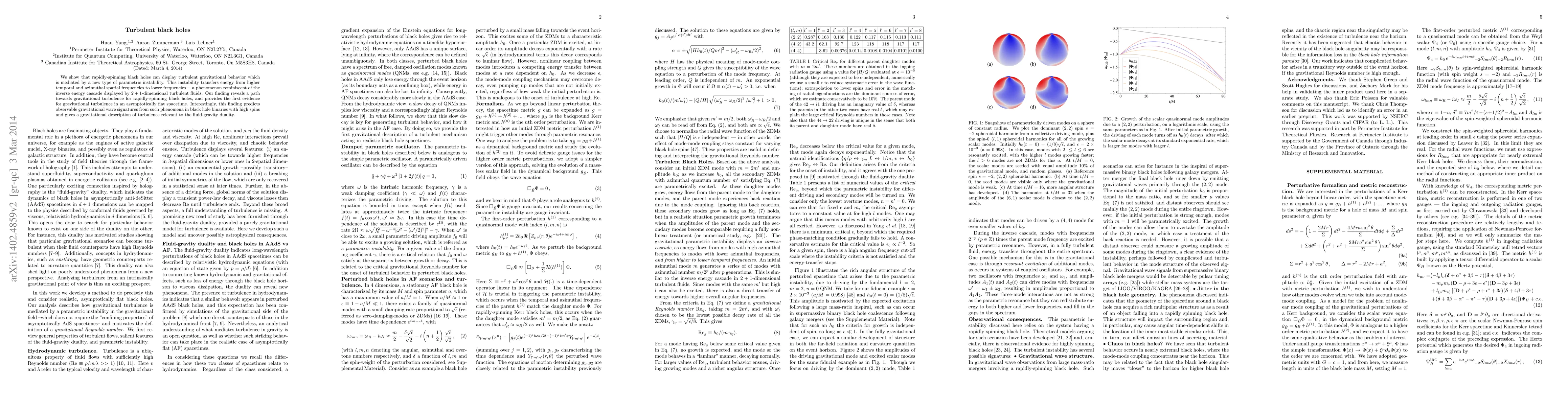 This paper demonstrates that rapidly-spinning black holes exhibit turbulent gravitational behavior due to a new parametric instability, akin to the inverse energy cascade in turbulent fluids. This discovery suggests observable gravitational wave signatures from high-spin black hole binaries and provides a gravitational description of turbulence relevant to the fluid-gravity duality.
