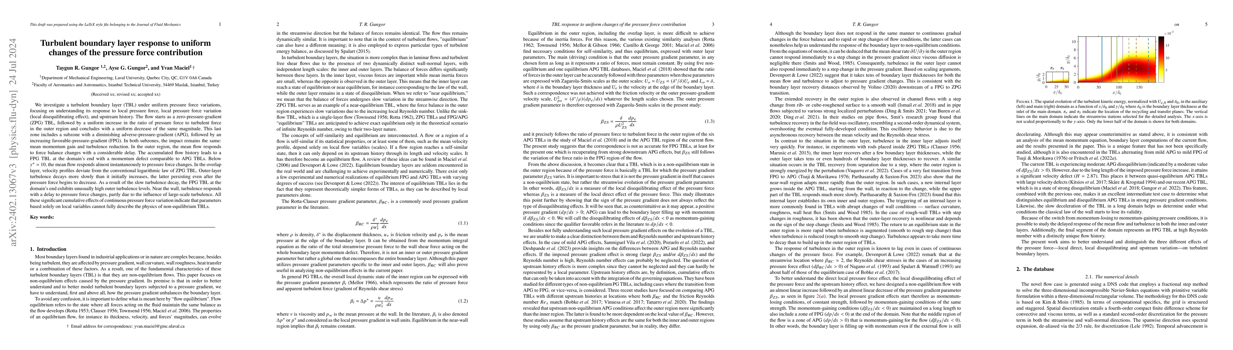 This study examines how a turbulent boundary layer reacts to uniform changes in pressure force, revealing significant delays in mean flow response and turbulence decay, with high outer turbulence levels persisting even after pressure force decreases. The findings highlight the intricate interplay between pressure force, mean flow, and turbulence.