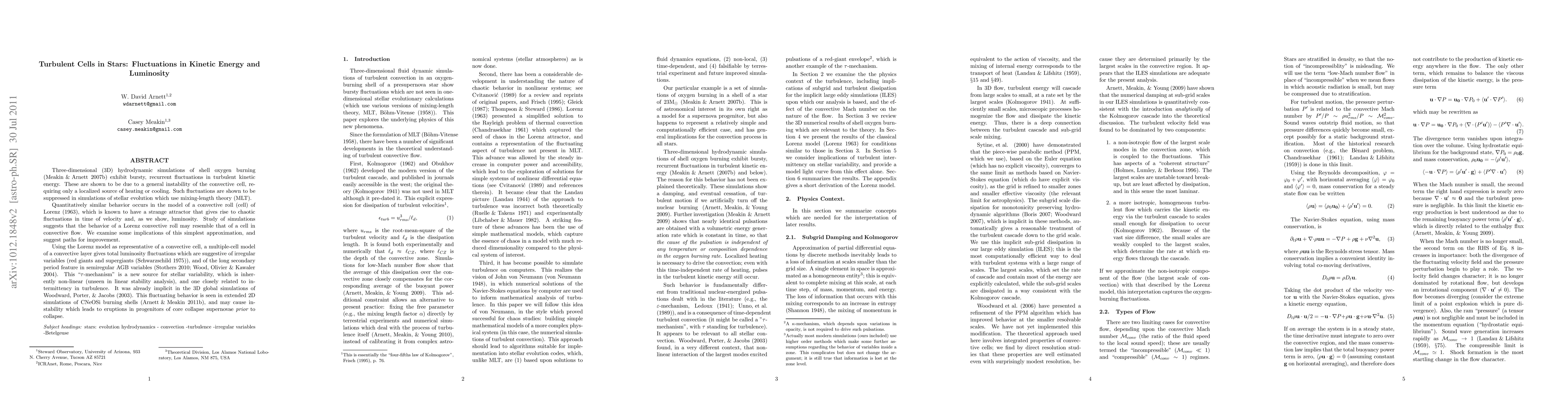 Three-dimensional (3D) hydrodynamic simulations of shell oxygen burning (Meakin and Arnett, 2007b) exhibit bursty, recurrent fluctuations in turbulent kinetic energy. These are shown to be due to a general instability of the convective cell, requiring only a localized source of heating or cooling. Such fluctuations are shown to be suppressed in simulations of stellar evolution which use mixing-length theory (MLT). Quantitatively similar behavior occurs in the model of a convective roll (cell) of Lorenz (1963), which is known to have a strange attractor that gives rise to chaotic fluctuations in time of velocity and, as we show, luminosity. Study of simulations suggests that the behavior of a Lorenz convective roll may resemble that of a cell in convective flow. We examine some implications of this simplest approximation, and suggest paths for improvement. Using the Lorenz model as representative of a convective cell, a multiple-cell model of a convective layer gives total luminosity fluctuations which are suggestive of irregular variables (red giants and supergiants (Schwarzschild 1975)), and of the long secondary period feature in semi-regular AGB variables (Stothers 2010, Wood, Olivier and Kawaler 2004). This "tau-mechanism" is a new source for stellar variability, which is inherently non-linear (unseen in linear stability analysis), and one closely related to intermittency in turbulence. It was already implicit in the 3D global simulations of Woodward, Porter and Jacobs (2003). This fluctuating behavior is seen in extended 2D simulations of CNeOSi burning shells (Arnett and Meakin 2011b), and may cause instability which leads to eruptions in progenitors of core collapse supernovae PRIOR to collapse.