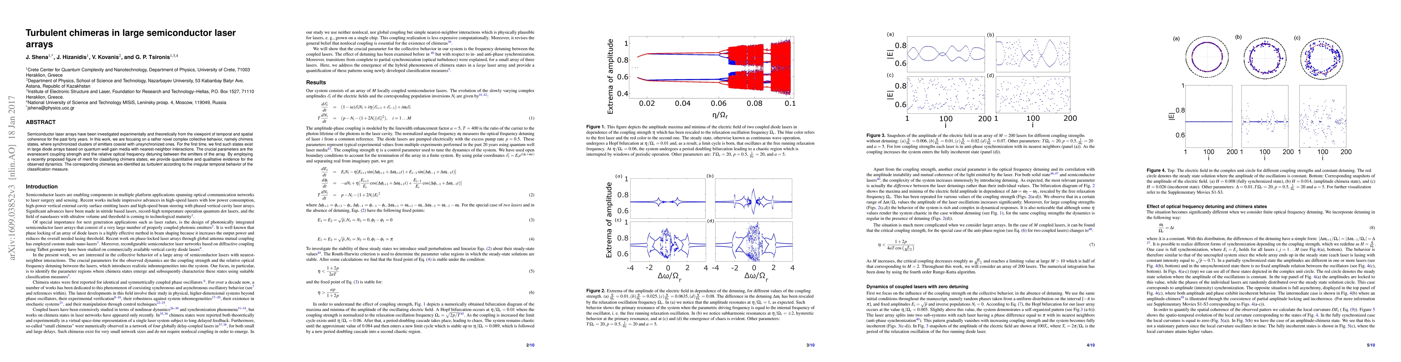 Semiconductor laser arrays have been investigated experimentally and theoretically from the viewpoint of temporal and spatial coherence for the past forty years. In this work, we are focusing on a rather novel complex collective behavior, namely chimera states, where synchronized clusters of emitters coexist with unsynchronized ones. For the first time, we find such states exist in large diode arrays based on quantum well gain media with nearest-neighbor interactions. The crucial parameters are the evanescent coupling strength and the relative optical frequency detuning between the emitters of the array. By employing a recently proposed figure of merit for classifying chimera states, we provide quantitative and qualitative evidence for the observed dynamics. The corresponding chimeras are identified as turbulent according to the irregular temporal behavior of the classification measure.