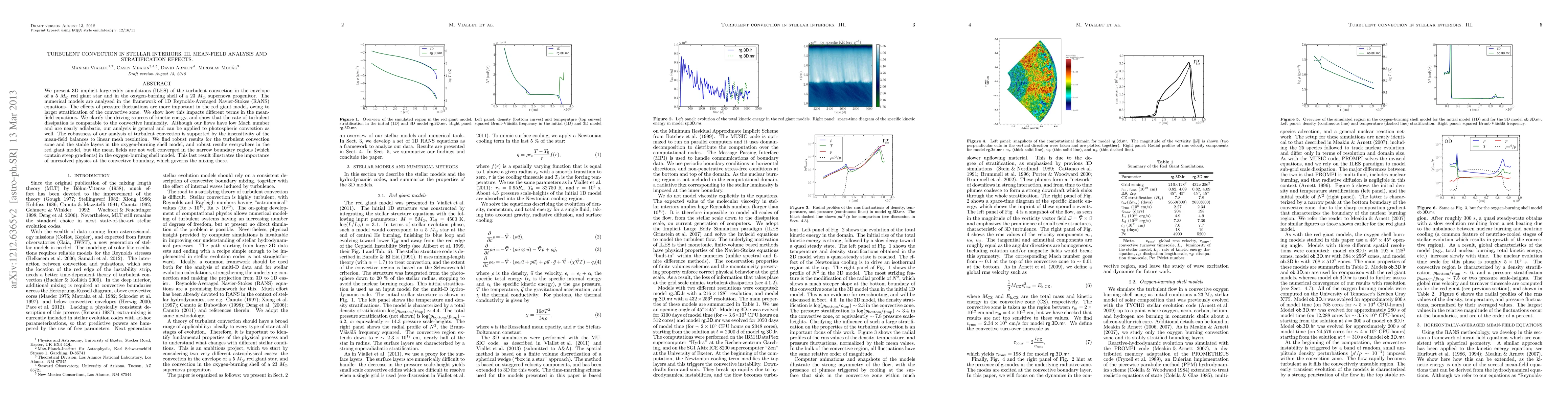 This paper uses 3D implicit large eddy simulations to study turbulent convection in the envelope of a red giant star and the oxygen-burning shell of a supernova progenitor. It analyzes the effects of stratification and pressure fluctuations, showing that turbulent dissipation is comparable to convective luminosity, and highlights the robustness of the mean-field analysis despite challenges in boundary regions.